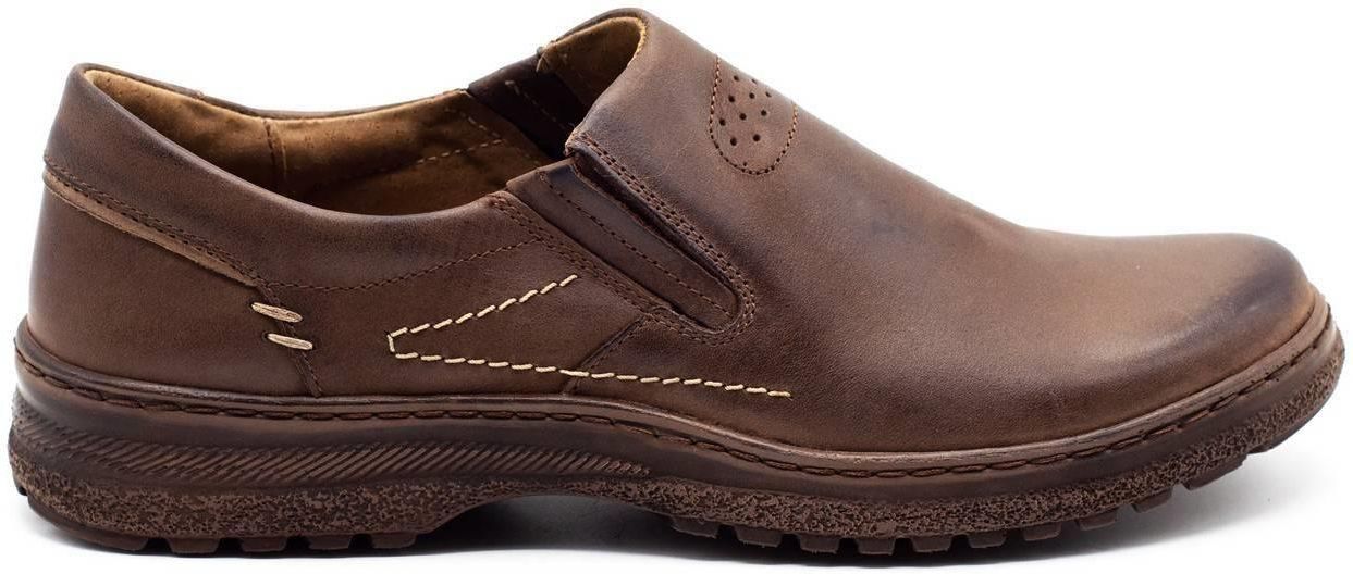 Buty męskie skórzane wsuwane POLSKIE casual 869 brązowe Kolor: brązowy Materiał wewnętrzny: Skóra naturalna Materiał: Skóra naturalna Podeszwa: Wysokogatunkowe tworzywo Sposób wykonania: Klejone, Szyte Tęgość: G Zapięcie: Wsuwane Konserwacja: Produkty do konserwacji zamszu i nubuku, renowatory …