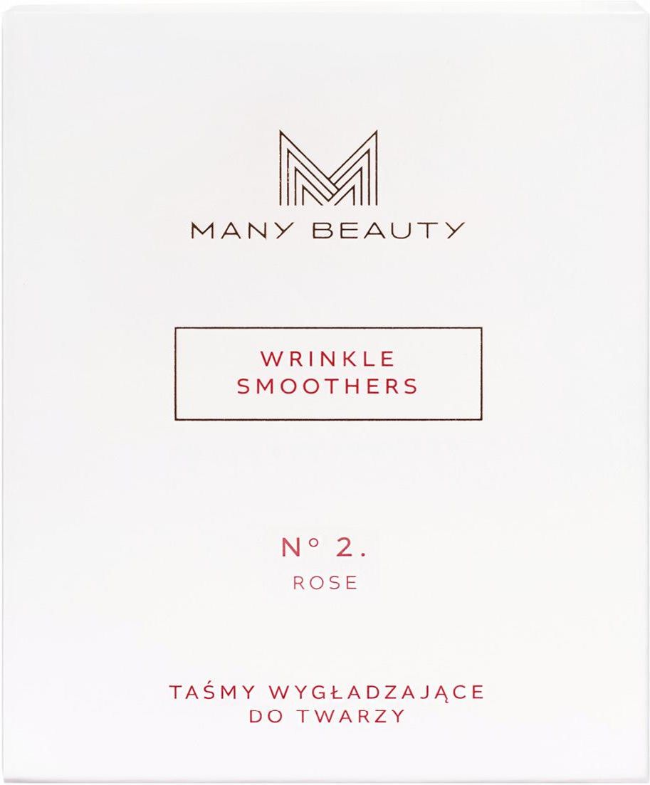 Wrinkle Smoothers marki Many Beauty​. Taśmy do twarzy. Wykonane są z bezpiecznego, hipoalergicznego i oddychającego materiału, który nie podrażnia (osoby z wrażliwą skórą powinny wykonać test uczuleniowy). Przeznaczone do stosowania na noc, bądź w ciągu dnia np. podczas pracy przy komputerze, kiedy mięśnie twarzy mimowolnie się napinają. Taśmy zapobiegają powstawaniu tzw. sennych zmarszczek, zaś regularnie stosowane pomagają rozluźnić napięte mięśnie twarzy i wygładzają zmarszczki mimiczne. Zestaw składa się z 27 sztuk taśm. Taśmy do twarzy. Są bezpieczne i hipoalergiczne. Wygładzają zmarszczki mimiczne i senne. Przeznaczone do stosowania w nocy bądź na dzień. UWAGA!No.2 Rose - to średnie plastry, które wygładzą płytkie i niezbyt rozległe zmarszczki np. kurze łapki czy lwia zmarszczka.