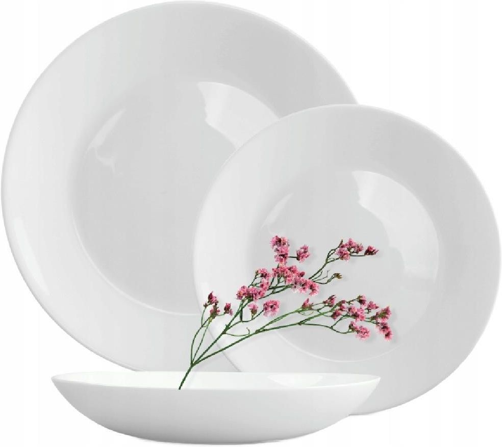 Talerze MG Home ABRIA to wyjątkowa kompozycja, która zachwyca swoją elegancją i kunsztem wykonania. Wyróżnia się nie tylko pięknym czystym białym kolorem, lecz także wysoką jakością materiałów. Talerze te zostały stworzone z myślą o osobach poszukujących wyjątkowych akcentów w aranżacji swojej przestrzeni. Klasyczny kształt pasuje idealnie do codziennego używania, ale także na wyjątkowe okazje! Właściwości wykonane ze szkła hartowanego opal, dzięki czemu są bardzo wytrzymałe, dzięki hartowaniu talerze Abria odporne są na zarysowania i stłuczenia, powierzchnia wewnątrz talerzy jest gładka, dzięki czemu cała zastawa jest łatwa do mycia, klasyczny wzór jest doskonałą bazą do serwowania różnorodnych dań, zestaw obiadowy przeznaczony jest zarówno do tradycyjnych jak i nowoczesnych jadalni, zestaw można myć w zmywarce. Skład zestawu 6 talerzy obiadowych 25.5 cm, 6 talerzy głębokich 20 cm, 6 talerzy deserowych 18 cm.