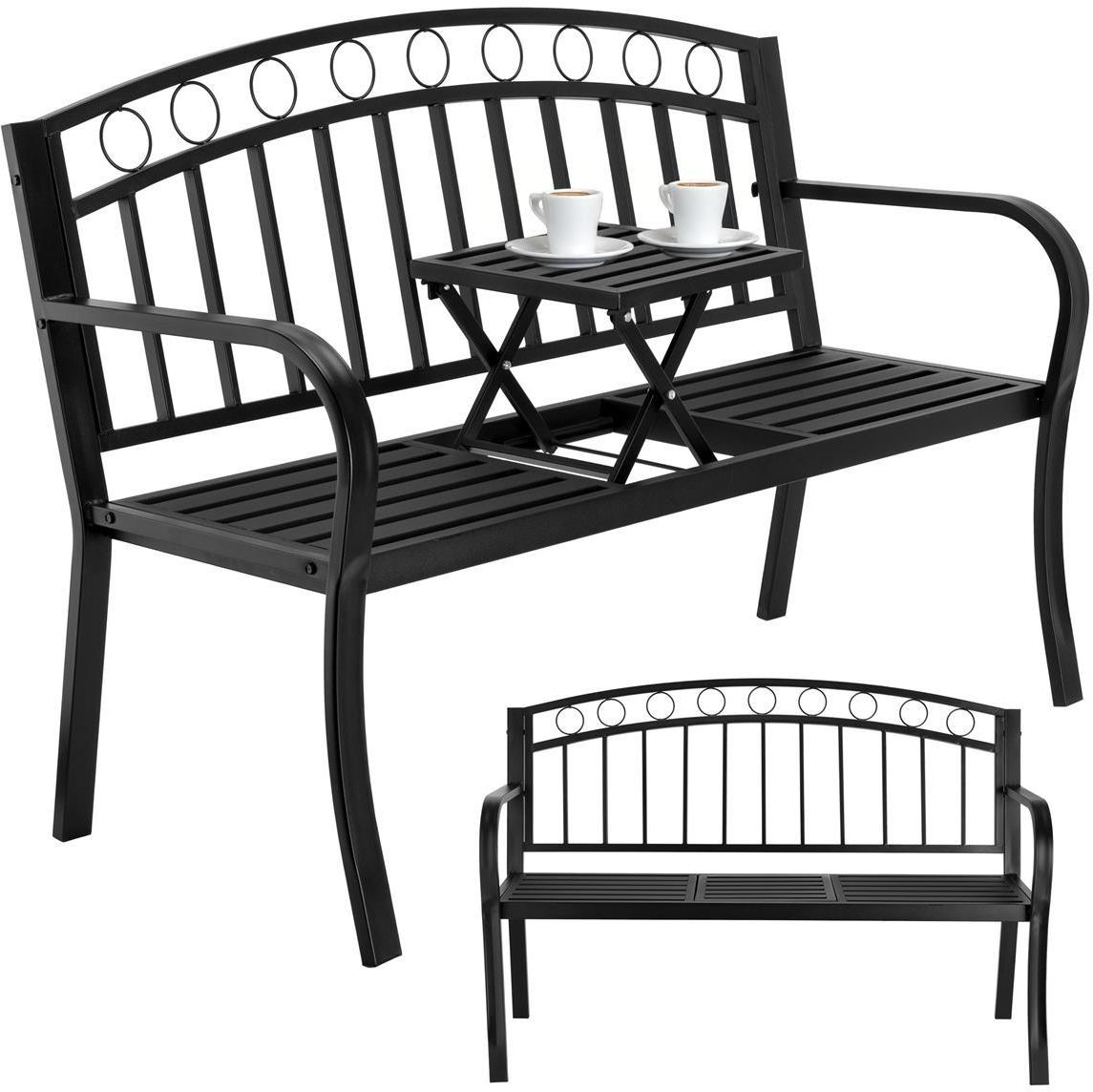 Ławka ogrodowa metalowa BANCO ⭐️ Rama i siedzisko ławki wykonane ze stali malowanej proszkowo ⭐️ Rozkładany stolik do herbaty, przekąsek lub na książkę ⭐️ Dekoracyjne oparcie w okręgi i klasyczne linie ⭐️ Ergonomiczne oparcie i wyprofilowane podłokietniki ⭐️ Maksymalne obciążenie 200 kg ⭐️ Idealna …