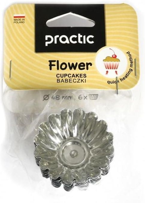 Zestaw 6 sztuk foremek do babeczek wykonanych z blachy o dużej przepuszczalności ciepła. Przeznaczone do pieczenia mini babeczek, muffinek i ciasteczek. Ozdobny kształt kwiatka nadaje wypiekom oryginalnego wyglądu Bezpieczne dla zdrowia i neutralne dla żywności Łatwe w użyciu i utrzymaniu w czystości Produkt polski Wymiary: Średnica: 4,8 cm Wysokość: 1,5 cm