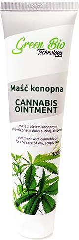 Green Bio Maść konopna Cannabis Ointment - 100 mlWskazania:Green Bio Maść konopna Cannabis Ointment wskazana jest do codziennej pielęgnacji skóry suchej, wrażliwej popękanej, ze skłonnością do łuszczycy, AZS lub atopowego zapalenia skóry.Właściwości:Green Bio Maść konopna Cannabis Ointment pielęgnuje skórę suchą i skłonną do podrażnień. Zawiera składniki, które odbudowują naturalną barierę i zapobiegają nadmiernemu przesuszaniu się naskórka. Olej z konopi zawarty w maści to naturalne źródło kwasów omega 3-6-9 wspierających intensywne nawilżenie i wzmocnienie bariery hydrolipidowej naskórka.Skład:INCI: Petrolatum, Cannabis Sativa Seed Oil, Cetearyl Alcohol, Tocopheryl Acetate, Parfum.Stosowanie:Cienką warstwę kremu należy nanieść na uprzednio oczyszczoną i wysuszoną skórę, rozsmarować i pozostawić do wchłonięcia. Maść aplikować dwa razy dziennie.Opakowanie:100 ml