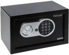 Sejf elektroniczny SAMSON - zamek na klucz lub szyfr elektroniczny; - zamek elektroniczny z 3-8 cyfrowym szyfrem - kodowany zamek kluczowy - możliwość montażu sejfu do podłogi lub ściany (2 otwory w podłodze + 2 w tylnej ścianie). Sejf elektroniczny Samson został zaprojektowany z myślą o ochronie wartościowych przedmiotów przed dostaniem się w niepowołane ręce. Zamek elektroniczny jest zabezpieczony kodem od 3 do 8 cyfr. W przypadku wyczerpanej baterii istnieje możliwość otwarcia sejfu kodowanym kluczem awaryjnym.Sejf idealnie sprawdzi się do przechowywania:- dokumentów;- kluczy;- pieniędzy;- biżuterii;- elektroniki (telefonu, laptopa, tabletu itp.) W zestawie znajduje się: sejf elektroniczny z zamkiem kluczowym, 4 x Bateria LR6 AA/1,5V, 2 x kodowany klucz awaryjny, 2 x kotwa montażowa, Wykładzina do wewnątrz sejfu, Instrukcja. Parametry:Wymiary zewnętrzne (wysokość/szerokość/długość): 200x310x200 mmWymiary wewnętrzne (wysokość/szerokość/długość):130x305x195 mmWaga: 4,5 kgGwarancja: 2 lataZamek elektroniczny: TAKZamek kluczowy: TAKOtwory montażowe: 4 (2 w podłodze, 2 w tylnej ścianie)Kolor: czarny (stal malowana proszkowo) Akcesoria: Zestaw kluczy (2 klucze) - klucze pozwalają na otwarcie sejfu bez konieczności wpisywania kodu. Klucze można stosować zamiennie z zamkiem elektronicznym - nie ma konieczności jednoczesnego użycia obydwu zamków w celu otwarcia sejfu. Klucze pozwolą również na otwarcie sejfu w przypadku wyładowania baterii. Kotwy / kołki montażowe (2 szt.) - kotwy montażowe posłużą do zamontowania sejfu do powierzchni płaskiej w celu uniemożliwienia przesunięcia lub kradzieży sejfu. Sejf posiada łącznie 4 otwory montażowe (opisane poniżej). Baterie (4 szt.) - popularne "paluszki" dostarczone w komplecie są bateriami fabrycznie nowymi, dzięki czemu nie istnieje możliwość, że sejf zostanie dostarczony z starymi bateriami wewnątrz zamka, które będą wymagać natychmiastowej wymiany, Zamek elektroniczny: Zamek elektroniczny jest intuicyjny i prosty w obsłudze, a jego sposób użytkowania został dokładnie opisany w instrukcji Każda akcja na klawiaturze jest sygnalizowana za pomocą sygnału dźwiękowego Wewnątrz sejfu znajduje się przycisk reset, który pozwala na szybką zmianę kodu, przez co sejf idealnie sprawdzi się w roli sejfu hotelowego czy biurowego. Dodatkowo, każdy sejf posiada numer seryjny na prawym dolnym rogu drzwi.Sposób montażu: Sejf można zamontować do podłogi lub ściany, co czyni sejf uniwersalnym do każdego typu pomieszczenia Kotwy montażowe znajdujące się w zestawie skutecznie przytwierdzą i unieruchomią sejf