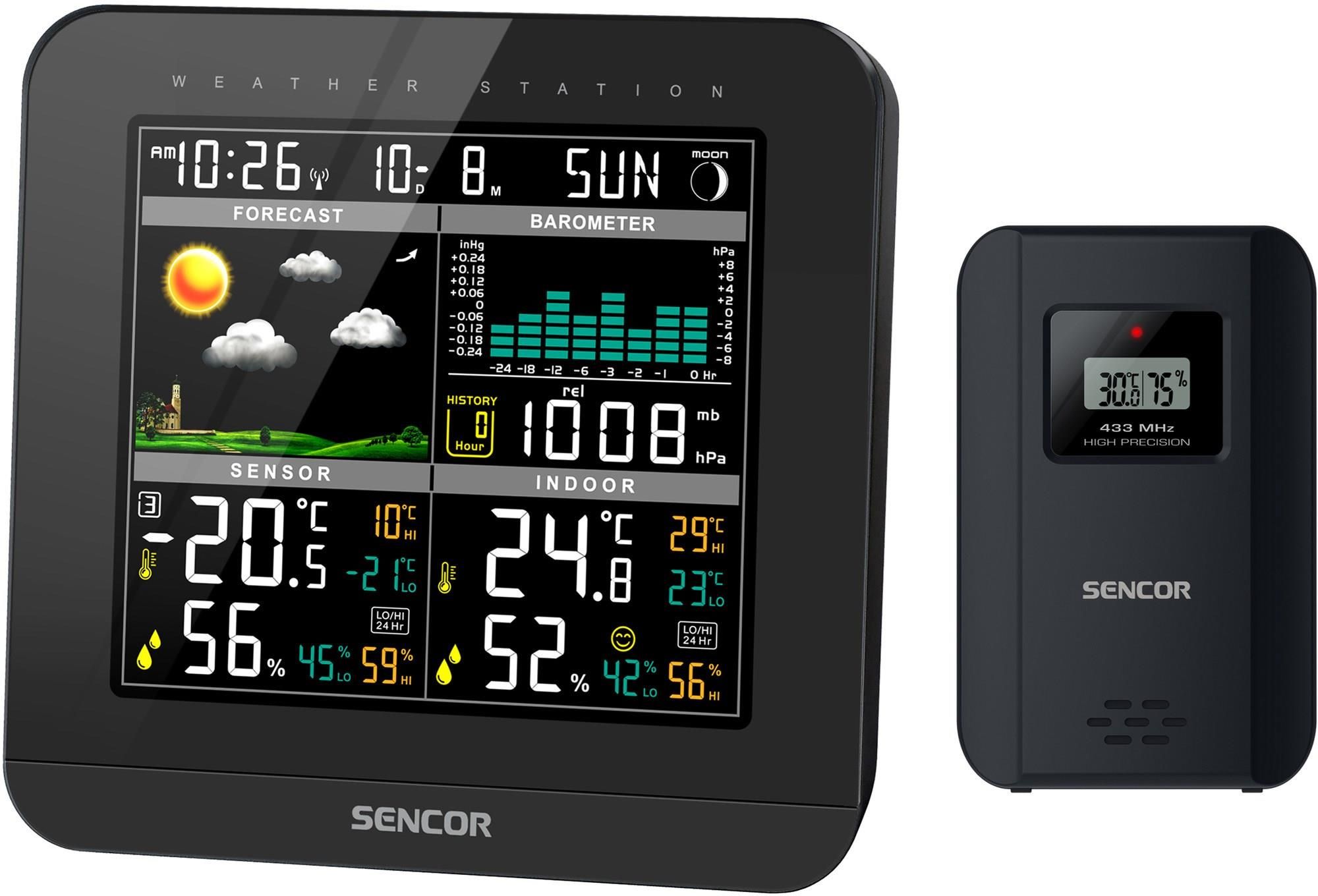 STACJA POGODOWA Z CZUJNIKIEM BEZPRZEWODOWYM SWS 5800 Ikona prognozy pogody (słonecznie, małe zachmurzenie, zachmurzenie, deszcz, śnieg) Prognoza na 12 ~ 24 godzin oparta na zmianie ciśnienia i temperatury powietrza Pomiar ciśnienia barometrycznego w wartościach absolutnych i względnych GŁÓWNE …