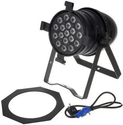 CHARAKTERYSTYKA Łatwa i wygodna konfiguracja z wykorzystaniem 7-segmentowego, 4-cyfrowego wyświetlacza oraz 4 przycisków sterujących Równomierne mieszanie kolorów i równomierny rozkład światła Proste okablowanie Podwójne nóżki to użytku stojącego jak i wiszącego Brak migotania (2000 Hz) Tryb master/slave z funkcją ID (identyfikacja pojedynczych reflektorów) Wbudowane programy zmian i przejść światła Wybieralne makra kolorów i dowolne ustawianie kolorów statycznych SPECYFIKACJA Źródło światła: 18 diod LED 4w1 RGBW o mocy 8 W każda Kąt wiązki światła: 25° Temperatura koloru zimnego światła LED: 8100 K Kanały DMX: 4/6/8 Wejście/wyjście DMX: 3-pinowy XLR Wejście i wyjście zasilania: złącze Speakon Zasilanie: 100-240V ~ 50/60 Hz Pobór mocy: 120 W Obudowa: Aluminiowa o czarnym kolorze Wymiary: 405 x 275 x 275 mm Waga: 3.3 kg