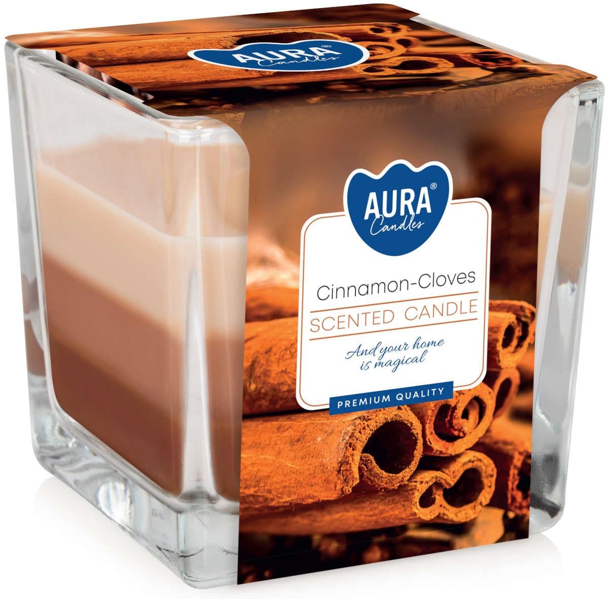 Świeca zapachowa trójkolorowa Cynamon-Goździki kwadrat ~32h Parczew