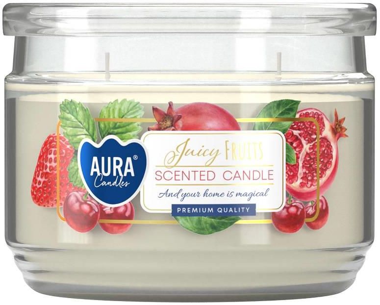 Świeca zapachowa w szkle soczyste owoce - owocowa eksplozja Zanurz się w zmysłowej przyjemności aromatycznej świecy marki AURA, która wypełni Twoje wnętrze zapachem soczystych owoców. To prawdziwa uczta dla zmysłów, łącząca intensywność dojrzałych wiśni, słodycz wanilii, świeżość truskawek oraz …