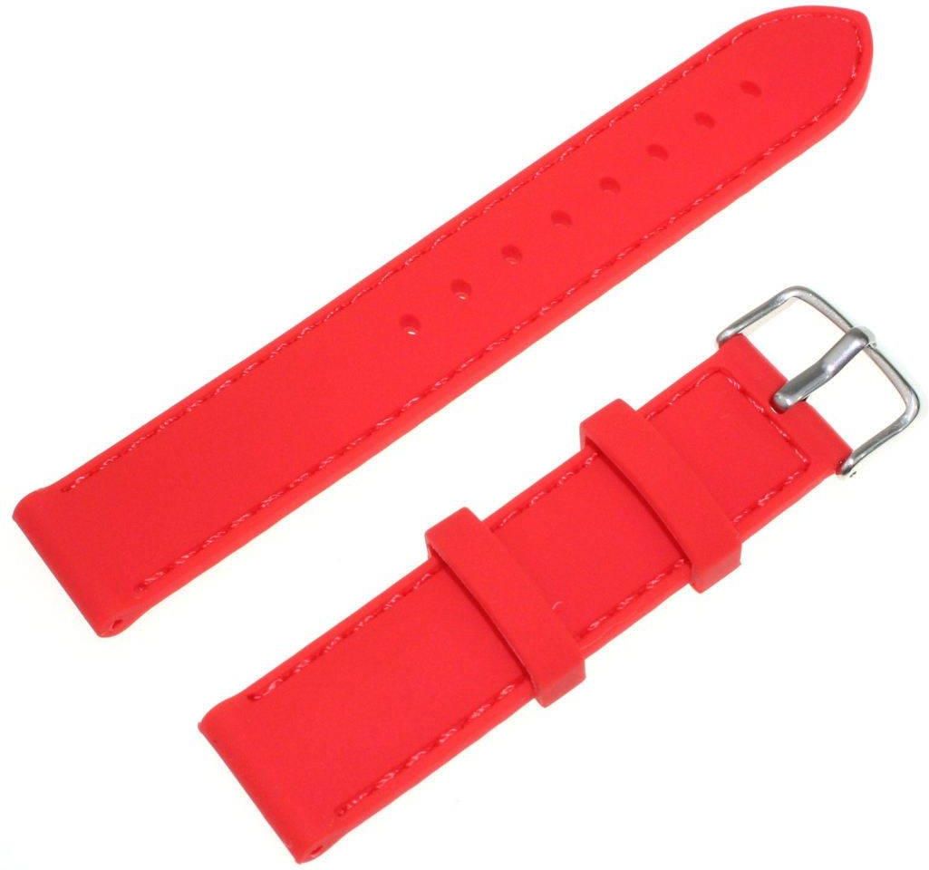 Silikonowy prosty czerwony matowy gładki przeszywany pasek do zegarka Tekla. Szerokość 20 mm. Pasuje do wszystkich zegarków ze standardowym mocowaniem o szerokości 20 mm. Teleskopy gratis