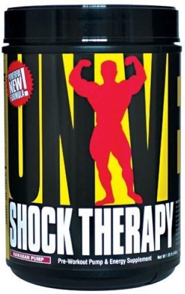 Universal Nutrition Shock Therapy 200g – legendarny przedtreningowy booster energii i pompy mięśniowejUniversal Nutrition Shock Therapy 200g to kultowy suplement przedtreningowy, znany i ceniony przez sportowców na całym świecie. Produkt został przetestowany przez topowych kulturystów oraz zawodników sportów siłowych. Od lat zbiera znakomite opinie wśród osób trenujących zarówno siłowo, jak i wytrzymałościowo. Jeśli chcesz wejść na wyższy poziom treningu – to właśnie ten produkt pomoże Ci go osiągnąć.Jak działa Universal Nutrition Shock Therapy?Stosowanie Universal Nutrition Shock Therapy ma na celu: zwiększenie poziomu energii na okres treningu, umożliwienie trenowania z większą intensywnością, nasilenie efektu pompy mięśniowej w trakcie i po sesji treningowej, zwiększenie siły, masy i wytrzymałości mięśni, działanie antykataboliczne dzięki zawartości BCAA – ochrona włókien mięśniowych podczas długich i ciężkich treningów. Shock Therapy to jeden z najpopularniejszych suplementów marki Universal Nutrition – obok Storm i produktów Animal. Został uznany za jeden z najlepszych suplementów przedtreningowych i szybko stał się bestsellerem wśród kulturystów i sportowców na całym świecie. W Polsce Shock Therapy zdobył tytuł suplementu roku na forum animalpak.pl w kategorii najlepszego produktu pompującego.Dlaczego warto wybrać Universal Nutrition Shock Therapy? poczuj eksplozję energii na treningu, trenuj dłużej i intensywniej, ciesz się pełniejszą pompą mięśniową i lepszym dopływem składników odżywczych, wzmocnij regenerację i ochronę mięśni, poczuj różnicę już po pierwszej dawce. Shock Therapy został rozbudowany o kompleks antyoksydantów, które wspierają ochronę organizmu przed wolnymi rodnikami powstającymi podczas treningu. Redukcja zmęczenia, pobudzenie, zwiększenie przepływu krwi i składników odżywczych do pracujących mięśni – to wszystko sprawia, że ćwiczenia stają się efektywniejsze, a wydajność organizmu rośnie.Shock Therapy naprawdę pozwala wejść poziom wyżej – potwierdzają to tysiące sportowców na całym świecie.Skład i wartości odżywcze Universal Nutrition Shock Therapy – kompletne daneWartość Odżywcza / Informacja Żywieniowa na 20 g: Energia: 100 kJ / 24 kcal Tłuszcz: 0 g w tym kwasy tłuszczowe nasycone: 0 g Węglowodany: 0,5 g w tym cukry: 0 g Białko: 0 g Witamina B6 (chlorowodorek pirydoksyny): 9.5 mg Witamina B12 (cyjanokobalamina, metylkobalamina): 10 µg Cholina: 180 mg Wapń: 20 mg Fosfor: 45 mg Magnez: 17 mg Potas: 50 mg Sód: 110 mgProprietary Formula NO Super Pump Volumizing Complex:Monohydrat kreatyny 3500 mg, Arginina 1250 mg, Cytrulina 210 mg, Betaina bezwodna 15 mg, ALA 0,47 mgMuscle Strength Blend:L-leucyna 2000 mg, L-walina 500 mg, L-izoleucyna 500 mg, L-tauryna 2650 mg, Beta-alanina 180 mg, L-glutamina 10 mgEntertropic Antioxidant Complex:L-tyrozyna 500 mg, Dwuwinian choliny 485 mg, Kofeina bezwodna 200 mg, Guarana 5 mg, Yerba Mate 5 mg, Ekstrakt z zielonej herbaty 5 mgElectrolyte Delivery Complex (6150 mg):Carb Blend (polimery glukozy, D-glukoza, trehaloza), Wodorowęglan sodu, Fosforan potasu, Fosforan trisodu, Węglan wapnia, Tlenek magnezuNajczęściej zadawane pytania (FAQ)Czy Shock Therapy jest dobry dla początkujących? Tak – korzystają z niego zarówno doświadczeni zawodnicy, jak i osoby zaczynające swoją przygodę z treningiem.Czy Shock Therapy zawiera kreatynę? Tak, i to w optymalnej dawce – co wzmacnia jego działanie i efektywność treningową.Kiedy najlepiej stosować Shock Therapy? Najlepiej 20–30 minut przed treningiem.Polecane produkty i większe opakowanieSzukasz większej gramatury? Sprawdź: Universal Shock Therapy w dużym opakowaniu. Dla najlepszych efektów stosuj razem z: Universal Nutrition Storm – działanie obu produktów świetnie się uzupełnia.Kopiowanie oraz rozpowszechnianie opisów jest zabronione przez Sklep TITANIUM SPORT © 2012. Ustawa z dnia 4 lutego 1994 r. o prawie autorskim i prawach pokrewnych (Dz. U. z 2006 r. Nr 90, poz. 631 z późn. zm.)