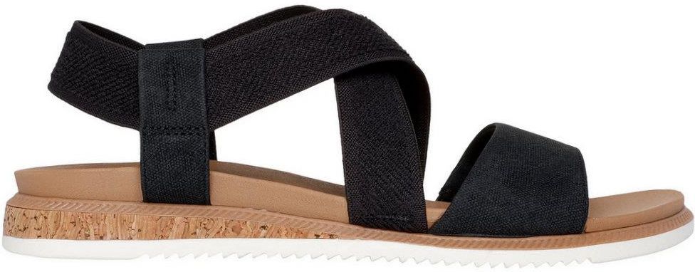 SKECHERS BOBS Desert Kiss Low - luźny i wygodny styl. Te swobodne sandały mają cholewkę z tkaniny z paskami na podbiciu, podeszwę środkową z korka i amortyzowaną wkładkę Skechers Plush Foam®.