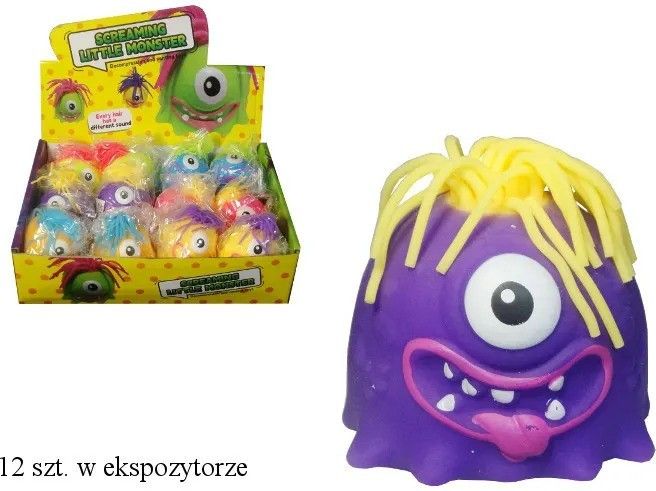 Gumowe jednookie potworki. Po ściśnięciu zmieniają swój kształt. Produkt występuje w kilku wersjach kolorystycznych, wybierany losowo. Cena dotyczy jednej sztuki. Podane wymiary są przykładowymi wymiarami potworka. Produkt zapakowany w przezroczysty worek. EAN: 5902496189281