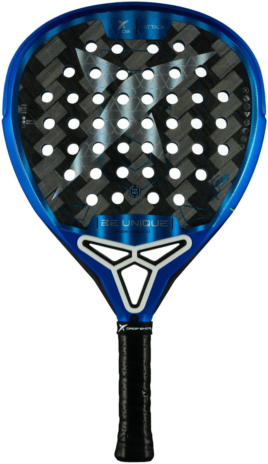 Rakieta do padla Drop Shot Axion Attack 1.0 Jon Sanz 2025 to idealny wybór dla zaawansowanych graczy poszukujących mocy i wydajności przy każdym uderzeniu. Zaprojektowana z formą w kształcie łzy, model ten oferuje agresywną i wydajną rozgrywkę. Wnętrze z gumy EVA Pro zapewnia kontrolę i dużą prędkość piłki, idealną dla osób wymagających precyzji i siły na korcie. Axion Attack to rakieta aktualnie używana przez zawodnika FIP Jona Sanza. Dzięki konstrukcji z 24-karatowego włókna węglowego Axion Attack 1.0 gwarantuje elastyczność, odporność i szybką reakcję na uderzenia. Ponadto zawiera zaawansowane technologie, takie jak system Smart Holes i system tłumienia drgań Vibra Tech Angles, wraz z systemem Anti Twist, aby zminimalizować wibracje i poprawić komfort. Uderzający niebiesko-żółty design z podpisem Jona Sanza dodaje wyjątkowego akcentu tej wysokowydajnej rakiecie do padla. EVA Pro: To pianka, która jest twardsza niż Eva Soft i bardziej miękka niż Eva Tech. Jej elastyczność zapewnia większą kontrolę doświadczonym graczom oraz lepsze czucie i moc piłki przy średniej i dużej prędkości piłki. 24K Carbon Twill: Najnowsza generacja węgla 24K. 24 000 włókien węgla ułożonych w niezwykle mocny splot skośny. Charakteryzuje się tym, że jest płaski, wyjątkowo cienki i elastyczny, co zapewnia większą kontrolę i lekkość, powodując szybszą reakcję podczas uderzania piłki. Smart Holes System: System rozprowadzania otworów o zakrzywionym, progresywnym kształcie, który zapewnia lepsze rozwinięcie sił mechanicznych w momencie uderzenia, pomagając nadać piłce większą rotację i poprawiając redukcję drgań. Ergo Pro Protector: Nylonowy ochraniacz naklejany na głowicę zwiększa wytrzymałość rakiety. Bardzo lekki i wymienialny. Chroni przed możliwymi uderzeniami w niskie piłki oraz uderzeniami w ścianę. Twin Tubular: rama z włókna węglowego, która zapewnia stabilność i redukuje wibracje po uderzeniu Cork Cushion Grip: System antywibracyjny, który w połączeniu z innymi technologiami i systemami sprawia, że rakiety te są idealne dla graczy z przewlekłymi kontuzjami. Dzięki korkowi znajdującemu się w okolicach chwytu, wibracje nie docierają do dłoni gracza. Power Beam Heart: Poziomy drążek, który podtrzymuje całą konstrukcję rakiety, wytrzymuje wszystkie naprężenia i uderzenia, a także redukuje przenoszone wibracje Technologia Vibra Tech Angles: Redukuje przenoszenie drgań na ramię. Rakieta sprzedawana w estetycznym pudełku. Doskonały pomysł na prezent!