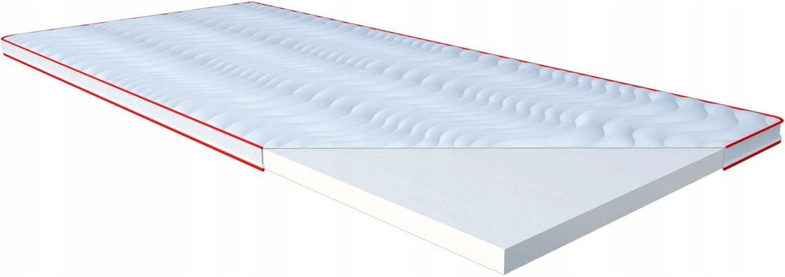 Materac posłaniowy LATEX Janpol 140x190 #5 Janpol Materac posłaniowy LATEX Producent: JANPOL Typ: lateksowy, materac dwustronny Wysokość materaca: ok. 5 cm Pokrowiec w standardzie: Smart Legenda do piktogramów: Zamek rozłączny: umożliwia rozdzielenie pokrowca na dwie części. Wentylacja: produkty oznaczone tym symbolem to materace, w których jest zachowany optymalny przepływ powietrza, dzięki zastosowaniu specjalnych taśm wentylujących lub odpowiedniej budowy wkładu. Dwustronny: symbol ten oznacza, że materac może być użytkowany po obu stronach, co zwiększa jego żywotność. Lateks: surowiec otrzymywany w całości z naturalnego mleczka kauczukowego lub połączenia lateksu naturalnego i syntetycznego. Jest elastyczny, sprężysty i dobrze dopasowuje się do kształtów ciała. Ma wysoką odporność na odkształcenia i właściwości antybakteryjne. Antyalergiczny: materiał oznaczony tym symbolem pozbawiony jest szkodliwych dla zdrowia substancji, a jego powierzchnia blokuje rozwój chorobotwórczych mikroorganizmów. Opis produktu: Gęsty i elastyczny lateks wypełnia wnętrze toppera, sprawiając, że ten idealnie dopasowuje się do Twojego ciała. Automatycznie wypełnia nierówności i układa kręgosłup w linii prostej – najkorzystniejszym dla niego położeniu. Specjalnie zaprojektowany system otworów umożliwia nieograniczony przepływ powietrza wewnątrz wkładu, a to gwarantuje utrzymanie odpowiedniej temperatury snu i doskonałe odprowadzanie wilgoci. Lateks posiada właściwości antybakteryjne i przeciwgrzybicze, nie pochłania kurzu, a na jego powierzchni nie rozwijają się żadne szkodliwe mikroorganizmy, a więc jest idealnym rozwiązaniem dla osób cierpiących na alergie. Materac nawierzchniowy z lateksem natychmiast podnosi komfort snu, zapewniając Ci miękkie i niezwykle higieniczne warunki użytkowania. Świetnie sprawdzi się w przypadku, gdy powierzchnia Twojego materaca podstawowego jest zbyt twarda lub kiedy potrzebujesz dodatkowej ochrony antyalergicznej. Pokrowiec: Górna warstwa: Smart - do prania w temperaturze 60 stopni, dolna warstwa: Antyslip – materiał zapobiegający przesuwaniu się toppera po powierzchni materaca bazowego, wyłącznie do czyszczenia miejscowego. ROZMIAR: 140x190 Kraj pochodzenia, Zasięg dostawy: Polska, Na terenie Polski Stan: Nowy, wolny od wad Gwarancja na terenie PL: 3 lata Materac posłaniowy LATEX Producent: JANPOL Typ: lateksowy, materac dwustronny Wysokość materaca: ok. 5 cm Pokrowiec w standardzie: Smart Gęsty i elastyczny lateks wypełnia wnętrze toppera, sprawiając, że ten idealnie dopasowuje się do Twojego ciała. Automatycznie wypełnia nierówności i układa kręgosłup w linii prostej – najkorzystniejszym dla niego położeniu.
