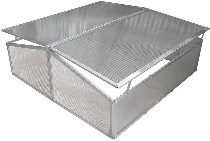 Przybliżony rozmiar po złożeniu: 1080x1080x410/285 mm. Szklarnia posiada 2 uchylne okna wentylacyjne dla łatwego dostępu. Wykonana z płyty poliwęglanowej o grubości 4 mm o wysokiej przepuszczalności światła. Solidna konstrukcja z aluminium ułatwiająca montaż w ciągu kilku minut. w zestawie 4 kotwiące kołki.