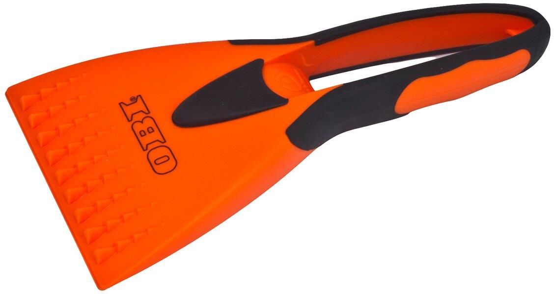 Skrobak do lodu OBI posiada ergonomiczny uchwyt wykonany z 2 komponentów i jest wygodny w użyciu. Z przodu posiada mocne zęby do zrywania grubszych warstw lodu i szeroką krawędź zeskrobującą do jego szybkiego usuwania.