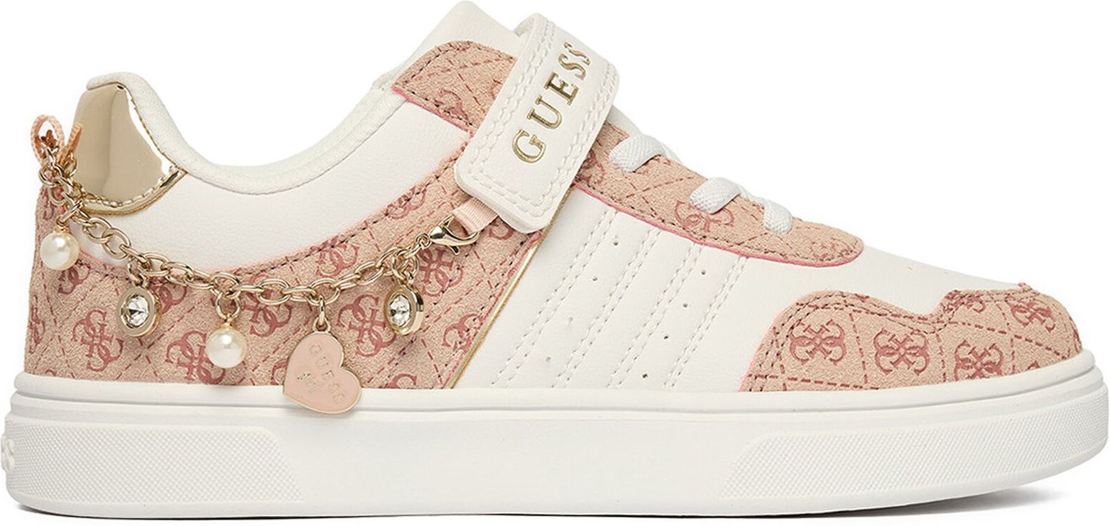 Stylowe sneakersy dla dziewczynki od marki Guess to połączenie wygody i modnego designu, które pokocha każda mała miłośniczka mody. Wykonane z wysokogatunkowego tworzywa syntetycznego, są lekkie, trwałe i łatwe w pielęgnacji, co czyni je idealnym wyborem na co dzień. Okrągły nosek zapewnia swobodę ruchu dla małych stóp, a zapięcie na rzep ułatwia szybkie zakładanie i zdejmowanie butów – idealne dla aktywnych dziewczynek. Zwieńczeniem całości jest subtelna dekoracja w postaci łańcuszka zawieszkami, która nadaje butom wyjątkowego charakteru i sprawia, że każda stylizacja nabiera blasku. Te sneakersy to must-have dla dziewczynki – wybierz je i podaruj swojemu dziecku wygodę w najlepszym wydaniu!