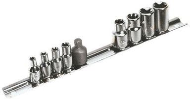 TOPEX 39D375 Nasadki Torx 1/4", 3/8", zestaw 9 szt. Nasadki Torx TOPEX (nr ref. 39D375) to praktyczny zestaw do dokręcania i odkręcania śrub z łbem typu Torx. Komplet zawiera 4 nasadki o gnieździe 1/4”, 4 o gnieździe 3/8” oraz redukcję. Wszystkie elementy wykonane z wysokiej jakości stali …