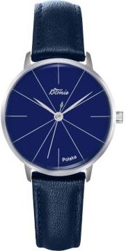 Mechanizm: kwarcowy Szkiełko: mineralne - zwiększona odporność na zarysowania Tarcza: w kolorze granatowym Koperta: w kolorze granatowym Wymiary koperty: 30mm (szerokość) 8mm (grubość) Bransoleta: wykonany z wysokiej jakości skóry naturalnej, w kolorze granatowym Wodoszczelność: 30m Gwarancja: 2 lata