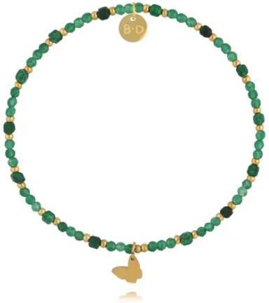 Bransoletka By Dziubeka BTW3345 z kamieniami i przywieszką w kształcie motylka.Surowiec: stal szlachetna.Kolor surowca: złoty.Kamienie: jadeity barwione.Zawieszka: 0,56 cm x 0,64 cm.Wielkość kamieni: 0,22 cm ; 0,24 cm.Średnica bransoletki: 5,30 cm bez rozciągania gumki.