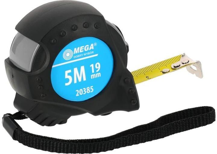 MEGA Miara zwijana gumowa 5m 19mm taśma funkcja stop certyfikat CE MID 20385 Miara zwijana gumowa marki MEGA o symbolu 20385 to niezastąpione narzędzie do pomiarów zarówno profesjonalnych, jak i codziennych. Taśma o długości 5 metrów i szerokości 19 mm została wyposażona w podwójną funkcję stop, co ułatwia dokładne i precyzyjne pomiary. Miara zwijana MEGA 20385 posiada certyfikat CE MID oraz znajduje się w II klasie dokładności, co gwarantuje jej wysoką jakość i precyzję. Dodatkowymi funkcjami miary są klips na pasek, 2 stopery umożliwiające zatrzymanie taśmy w odpowiednim miejscu oraz praktyczna obudowa z gumowaną nakładką, która zapewnia efektywną ochronę urządzenia podczas upadku. Taśma w kolorze żółtym zwiększa widoczność i ułatwia korzystanie z miary w różnych warunkach oświetleniowych. Dodatkowo posiada wygodny materiałowy uchwyt na rękę, co zapewnia komfortowe i pewne trzymanie podczas pomiarów. Miara zwijana gumowa MEGA 20385 to nie tylko wygodne narzędzie pomiarowe, ale także solidny sprzęt, który sprawdzi się w wielu sytuacjach zarówno w warsztacie, jak i w domu. Kod produktu: 20385 EAN: 5903755203854