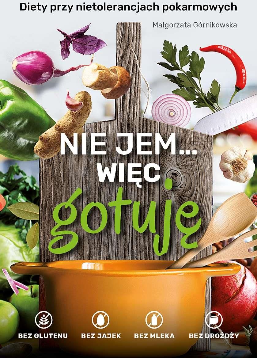 Nie jem… więc gotuję to książka kucharska wychodząca naprzeciw osobom zmagającym się z alergiami pokarmowymi. Autorka proponuje w niej smaczne i bogate w składniki odżywcze potrawy bez glutenu, jajek, mleka krowiego, drożdży, orzechów, kukurydzy, migdałów, miodu i kakao. Zgromadzone przez nią przepisy na pieczywo, apetyczne smarowidła, zupy, dania główne, przekąski, sałatki i desery pozwalają na komponowanie codziennych jadłospisów dla całej rodziny bez popadania przy tym w rutynę i kulinarną nudę. Uzupełnieniem są atrakcyjne zdjęcia pobudzające apetyt i zachęcające do przyrządzania prostych, a przy tym niebanalnych dań. SBM 2020, ISBN: 9788366325579, 192 s., 165x240, oprawa twarda