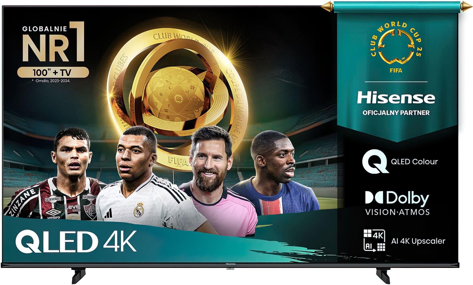 QLED Smart TV Hisense 43E79Q Pro Rozmiar przekątnej ekranu: 43 cali Rozmiar przekątnej obrazu: 108 cm Maksymalna rozdzielczość: 4K Ultra HD 3840x2160 Dolby Atmos DTS Virtual X decoding Interfejs użytkownika: VIDAA Smart OS Seria: E7Q PRO   NAJWAŻNIEJSZE WŁAŚCIWOŚCI 144Hz Game Mode PRO,  240 High Refresh Rate Zwyciężaj dzięki 144Hz VRR – Tryb gry PRO dla graczy wymagających 144Hz Game Mode PRO to funkcja zaprojektowana z myślą o graczach, którzy oczekują ultrapłynnej rozgrywki i pełnej kontroli nad każdą klatką. Częstotliwość odświeżania 144 Hz oraz technologia VRR (Variable Refresh Rate) zapewniają minimalne opóźnienia i natychmiastową reakcję na każdy ruch. Zyskaj przewagę nad przeciwnikami dzięki niskiemu input lagowi, dynamicznej zmianie FPS i responsywnemu menu gracza. Niezależnie, czy grasz na konsoli czy PC – telewizor gamingowy Hisense dostarczy maksymalną płynność i przewagę tam, gdzie liczy się każda sekunda. 144Hz VRR,  AMD FreeSync Premium Płynna rozgrywka bez zakłóczeń Dzięki zmiennej częstotliwości klatek VRR i technologii AMD FreeSync Premium można cieszyć się imponującą, płynną grą. Nie ominie Cię żadna klatka, a granie będzie dynamiczne i bez smużenia. QLED Colour Miliardy odcieni, niesamowita głębia barw Zanurz się w świecie żywych, naturalnych kolorów, dzięki technologii QLED Quantum Dot. Każda scena zachwyca intensywnością barw, niesamowitą jasnością i imponującym kontrastem, który wydobywa detale, jakich wcześniej nie dostrzegałeś. Telewizor Hisense QLED 4K odwzorowuje miliardy odcieni – zarówno ciepłych, jak i chłodnych – z precyzją, która sprawia, że obraz wygląda jak żywy. To idealny wybór dla miłośników kina, sportu i grania w najwyższej jakości. Dolby Vision,  Dolby Atmos Dolby Vision i Dolby Atmos – telewizor z kinowym obrazem 4K i dźwiękiem przestrzennym 360° Telewizor Hisense z technologiami Dolby Vision i Dolby Atmos zapewnia realistyczne wrażenia audiowizualne na najwyższym poziomie. Obraz w jakości 4K HDR zachwyca głębią kolorów, kontrastem i szczegółowością, a przestrzenny dźwięk 360° otacza Cię z każdej strony. Niezależnie od tego, czy oglądasz film, serial, czy grasz na konsoli – każdy detal i efekt dźwiękowy są wyraźne i naturalne. To idealny wybór dla osób szukających telewizora z Dolby Vision i Dolby Atmos do domowego kina. Hi-Concerto,  Dolby Vision,  Dolby Atmos Hi-Concerto – synchronizacja telewizora i soundbara dla doskonałego dźwięku przestrzennego Technologia Hi-Concerto w telewizorach Hisense umożliwia precyzyjną synchronizację głośników telewizora z dedykowanym soundbarem, tworząc spójną scenę dźwiękową bez opóźnień i zakłóceń. Efektem jest czysty, przestrzenny dźwięk o wysokiej precyzji – idealny do filmów, seriali i gier. Dzięki temu rozwiązaniu możesz cieszyć się pełnym realizmem audio w domowym kinie, bez konieczności ręcznego konfigurowania urządzeń. Hisense TV Sound Companion Razem znaczy lepiej Soundbar Hisense został zaprojektowany tak, aby idealnie współgrać z telewizorem Hisense. Funkcje takie jak Hi-Concerto, TV Mode, Room Fitting Tuning i EzPlay zapewniają płynne i spójne wrażenia audiowizualne. *Hi-Concerto Room Fitting Tuning i TV Mode działają z wybranymi modelami telewizorów i soundbarów Hisense. AI Picture Obraz inteligentnie udoskonalony Sztuczna inteligencja analizuje zawartość ekranu w czasie rzeczywistym, optymalizując kontrast, kolory, detale i czystość obrazu. Dzięki temu każda scena wygląda lepiej, bardziej naturalnie i zachwyca realizmem. Zobacz wszystko wyraźniej, piękniej i dokładniej niż kiedykolwiek wcześniej. AI Smooth Motion,  AI Sports Mode Płynny obraz w każdej scenie Inteligentny tryb sportowy w telewizorach Hisense wykorzystuje AI, aby zapewnić najlepsze efekty audiowizualne podczas dynamicznych scen. Więcej detali, brak smużenia, wyraźnie słyszalny komentarz — wszystko dla maksymalnych emocji. Sztuczna inteligencja dba również o płynność ruchu niezależnie od tego, czy oglądasz transmisję sportową, film akcji czy grasz w ulubioną grę. Dzięki szybkiemu panelowi, redukcji szumów 3D i technologii MEMC obraz jest zawsze płynny i wyraźny. Żadne dynamiczne ujęcie nie umknie Twojej uwadze. transmisjach sportowych, kinie akcji, czy rozgrywce. AI 4K Upscaler Obraz jak w natywnym 4K, nawet z niższej rozdzielczości Technologia AI 4K Upscaler w telewizorach Hisense inteligentnie analizuje każdy piksel materiału w niższej rozdzielczości i automatycznie poprawia jego ostrość, kolory i detale. Dzięki temu nawet starsze filmy, seriale i programy wyglądają jak w natywnym 4K – wyraźniej, ostrzej i bardziej realistycznie. Ciesz się ulubionymi treściami w jakości zbliżonej do 4K Ultra HD, bez kompromisów, na dowolnym źródle sygnału. AI Light Sensor Inteligentna jasność dla komfortowych seansów Nie ważne czy oglądasz w dzień czy w nocy. Inteligentny czujnik światła dostosuje poziom jasność ekranu do bieżącej sytuacji w pokoju. Ciesz się wyraźnym obrazem za dnia i w nocy. Usiądź wygodnie i pozwól telewizorowi dopasować obraz dla Twojego komfortu, ale i niższego zużycia energii elektrycznej. Game Bar Panel dla graczy z błyskawicznym dostępem do ustawień rozgrywki Game Bar to rozbudowany interfejs dla graczy, który zapewnia szybki dostęp do najważniejszych opcji, takich jak liczba klatek na sekundę (FPS), VRR, HDR, czy proporcje obrazu. Pozwala na płynną zmianę ustawień bez wychodzenia z gry, dając pełną kontrolę nad każdym elementem rozgrywki. Dzięki temu możesz w czasie rzeczywistym dopasować ekran do własnych preferencji i cieszyć się dynamiczną, zoptymalizowaną grafiką. Idealne rozwiązanie dla tych, którzy oczekują maksymalnej wydajności i komfortu grania. Filmmaker Mode Tryb kinowy z obrazem zgodnym z wizją reżysera Filmmaker Mo