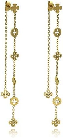 Złocone kolczyki Yvon ze stali szlachetnej, wiszące długie z koniczynkami.