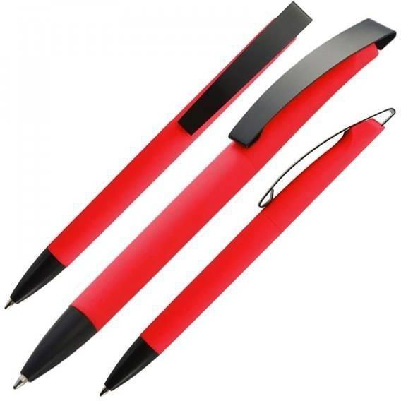 Plastikowy długopis z mechanizmem obrotowym i dużym metalowym klipem. Posiada plastikowy wkład piszący na niebiesko, grawer możliwy na klipsie.