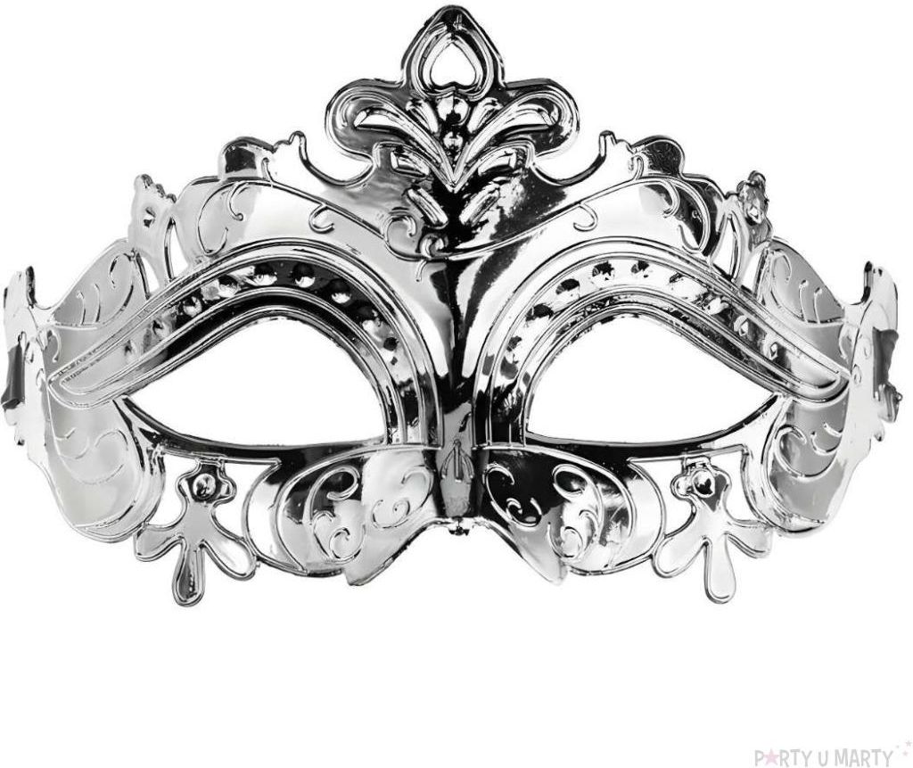 Partydeco Elegancka Srebrna Maska Wenecka Z Cekinami Dodatek Do Stroju Na Karnawał 17x9cm MAS22018 Pelplin