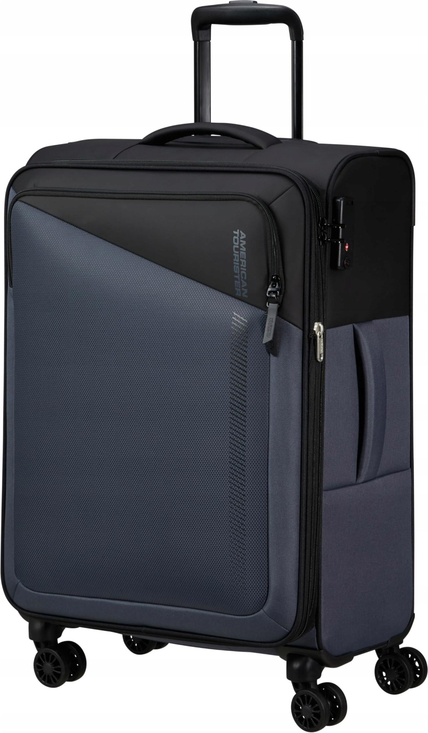 American Tourister Daring Dash walizka z możliwością rozszerzenia, czarny/szary (Black/Grey), Spinner M, Walizki i wózki Producent: American Tourister Elegancka i funkcjonalna walizka American Tourister Daring Dash Spinner M czarny/szary to idealny towarzysz podróży. Spinner 66,5 z możliwością rozszerzenia zapewnia dużą pojemność, a lekko obracające się kółka ułatwiają transport. Wykonana z wysokiej jakości materiałów, w tym z recyklingu butelek PET, ta walizka to połączenie trwałości i stylu. Walizka American Tourister Daring Dash to nie tylko praktyczny bagaż podręczny, ale też ekologiczny wybór. Zastosowanie recyklingu w produkcji materiału wewnętrznego to rozwiązanie przyjazne dla środowiska. Dodatkowo, wpuszczane zamek TSA z 3 cyframi gwarantuje bezpieczeństwo przechowywanych rzeczy. Dzięki unikalnemu designowi i solidnej konstrukcji, walizka American Tourister Daring Dash Spinner M czarny/szary wyróżnia się na tle innych walizek. Praktyczne dodatki i możliwość rozszerzenia pojemności sprawiają, że to doskonały wybór dla wymagających podróżników. Spinner 66,5 z możliwością rozszerzenia (walizka średniej wielkości: podróż tygodniowa): 45 x 29 x 66,5, 67/75 l, 3,10 kg Możliwość rozszerzenia dla większej objętości opakowania Lekko obracające się podwójne kółka zapewniają przyjemny transport Mocne, wpuszczone połączenie TSA z 3 cyframi do bezpiecznego przechowywania bagażu Materiał wewnętrzny z butelek PET pochodzących z recyklingu przy użyciu naszej technologii Recycclex waga przedmiotu: 3150 grams Nazwa modelu: Daring Dash punkt znaku wypunktowania: Spinner 66,5 z możliwością rozszerzenia (walizka średniej wielkości: podróż tygodniowa): 45 x 29 x 66,5, 67/75 l, 3,10 kg, Możliwość rozszerzenia dla większej objętości opakowania, Lekko obracające się podwójne kółka zapewniają przyjemny transport, Mocne, wpuszczone połączenie TSA z 3 cyframi do bezpiecznego przechowywania bagażu, Materiał wewnętrzny z butelek PET pochodzących z recyklingu przy użyciu naszej technologii Recycclex typ skorupy: Miękki ilość sztuk w opakowaniu: 1 marka: American Tourister kod unspsc: 53121503 kolekcja: Daring Dash Liczba przedmiotów: 1 rozmiar: Spinner M numer części: 150911 styl: Walizki i wózki kolor: czarny/szary (Black/Grey) wzór: Jednolity waga opakowania przedmiotu: 4.11 kilograms producent: American Tourister zewnętrznie przypisany identyfikator produktu: 5400520265470 zalecane węzły przeglądania: 20849328031 numer modelu: 150911 Rodzaj blokady: Zamek szyfrowy dział: Uniseks specjalna funkcja: Możliwość rozszerzenia, Certyfikat TSA, Możliwość rozbudowy liczba kół: 4 nazwa przedmiotu: American Tourister Daring Dash walizka z możliwością rozszerzenia, czarny/szary (Black/Grey), Spinner M, Walizki i wózki rodzaj paska: Elastyczny materiał: Poliester