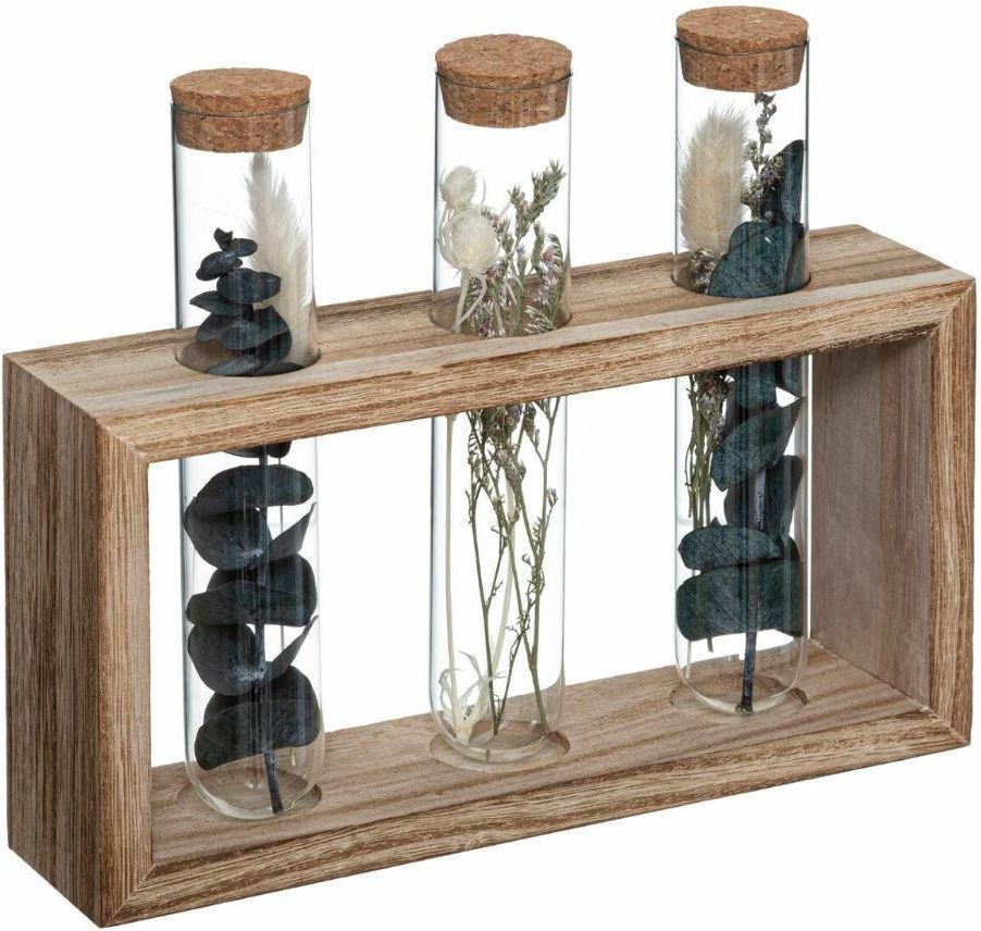 Potrójny wazon szklany dekoracyjny z suszonymi kwiatami na drewnie marki Atmosphera to wyjątkowa ozdoba o wysokości 17,2 cm, która łączy w sobie naturalność szkła i drewna z niepowtarzalnym urokiem suszonych roślin. Kompaktowy format (21 × 5 cm) pozwala na subtelne wprowadzenie stylu boho i vintage …