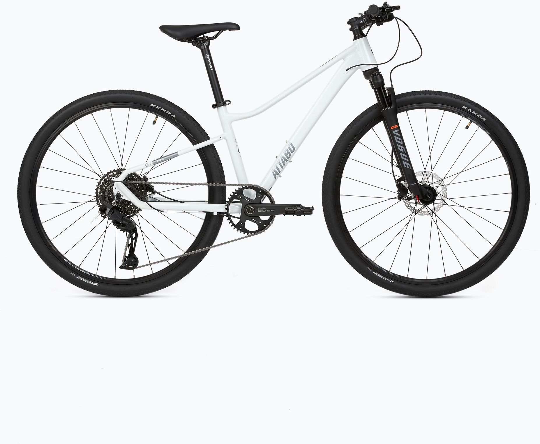 Rower crossowy damski ATTABO TORRE 5.0 28" biały to zaawansowana konstrukcja zaprojektowana z myślą o kobietach poszukujących wszechstronnego środka transportu. Lekka rama z aluminium 6061 charakteryzuje się obniżonym przekrojem ułatwiającym szybkie wsiadanie oraz zsiadanie w każdych warunkach. Progresywna geometria zapewnia stabilne prowadzenie na asfaltowych ścieżkach oraz nieutwardzonych leśnych traktach. Precyzyjny napęd Shimano Cues Zastosowanie nowoczesnej grupy osprzętu Shimano Cues U6000 w układzie 1x11 gwarantuje błyskawiczną i płynną zmianę przełożeń pod obciążeniem. Mechanizm korbowy Hollowtech II z drążonymi ramionami redukuje masę całkowitą przy zachowaniu maksymalnej sztywności konstrukcji. Szeroki zakres kasety LG400 pozwala na swobodne pokonywanie stromych podjazdów bez nadmiernego wysiłku fizycznego. Amortyzacja powietrzna RST Vogue Przedni widelec RST Vogue Air o skoku 60 mm skutecznie pochłania drgania generowane przez drobne nierówności podłoża. Sprężyna powietrzna umożliwia precyzyjne dopasowanie twardości amortyzatora do indywidualnej wagi użytkowniczki oraz preferowanego stylu jazdy. Blokada skoku okazuje się niezwykle przydatna podczas dynamicznego przyspieszania na gładkich i twardych nawierzchniach. Hydrauliczna siła hamowania Układ hamulcowy Shimano MT200 z tarczami o średnicy 160 mm oferuje doskonałą modulację siły hamowania niezależnie od panującej aury. Hydrauliczna konstrukcja wymaga użycia minimalnej siły palców do zatrzymania pojazdu w sytuacjach awaryjnych na drodze. System ten zachowuje pełną sprawność podczas długich zjazdów oraz w trakcie intensywnych opadów deszczu. Komfortowa ergonomia jazdy Rower crossowy damski ATTABO TORRE 5.0 28" biały został wyposażony w ergonomiczne siodełko DDK-D251FX ERGOMETRIX wspierające komfort podczas wielogodzinnych wypraw. Opony Kenda Piedmont z uniwersalnym bieżnikiem zapewniają niskie opory toczenia oraz pewną przyczepność w zakrętach. Całość opiera się na wytrzymałych dwukomorowych obręczach przystosowanych do intensywnej eksploatacji w zróżnicowanym terenie. Rower crossowy damski ATTABO TORRE 5.0 28" biały - cechy: • Rama z aluminium 6061 o obniżonej geometrii ułatwia komfortowe wsiadanie oraz zsiadanie; • Powietrzny amortyzator RST Vogue Air 60 mm redukuje zmęczenie dłoni na wybojach; • Napęd Shimano Cues 1x11 zapewnia precyzyjną zmianę biegów w trudnych warunkach; • Hydrauliczne hamulce tarczowe Shimano MT200 gwarantują bezpieczeństwo i krótką drogę zatrzymania; • Korba Hollowtech II zwiększa efektywność pedałowania poprzez optymalne przekazywanie generowanej mocy; • Opony Kenda Piedmont 700x45C łączą szybkość na asfalcie z przyczepnością w terenie; • Piasty z systemem Thru Axle poprawiają sztywność kół i precyzję prowadzenia roweru; • Ergonomiczne siodełko DDK wspiera prawidłową postawę ciała podczas długich tras turystycznych.