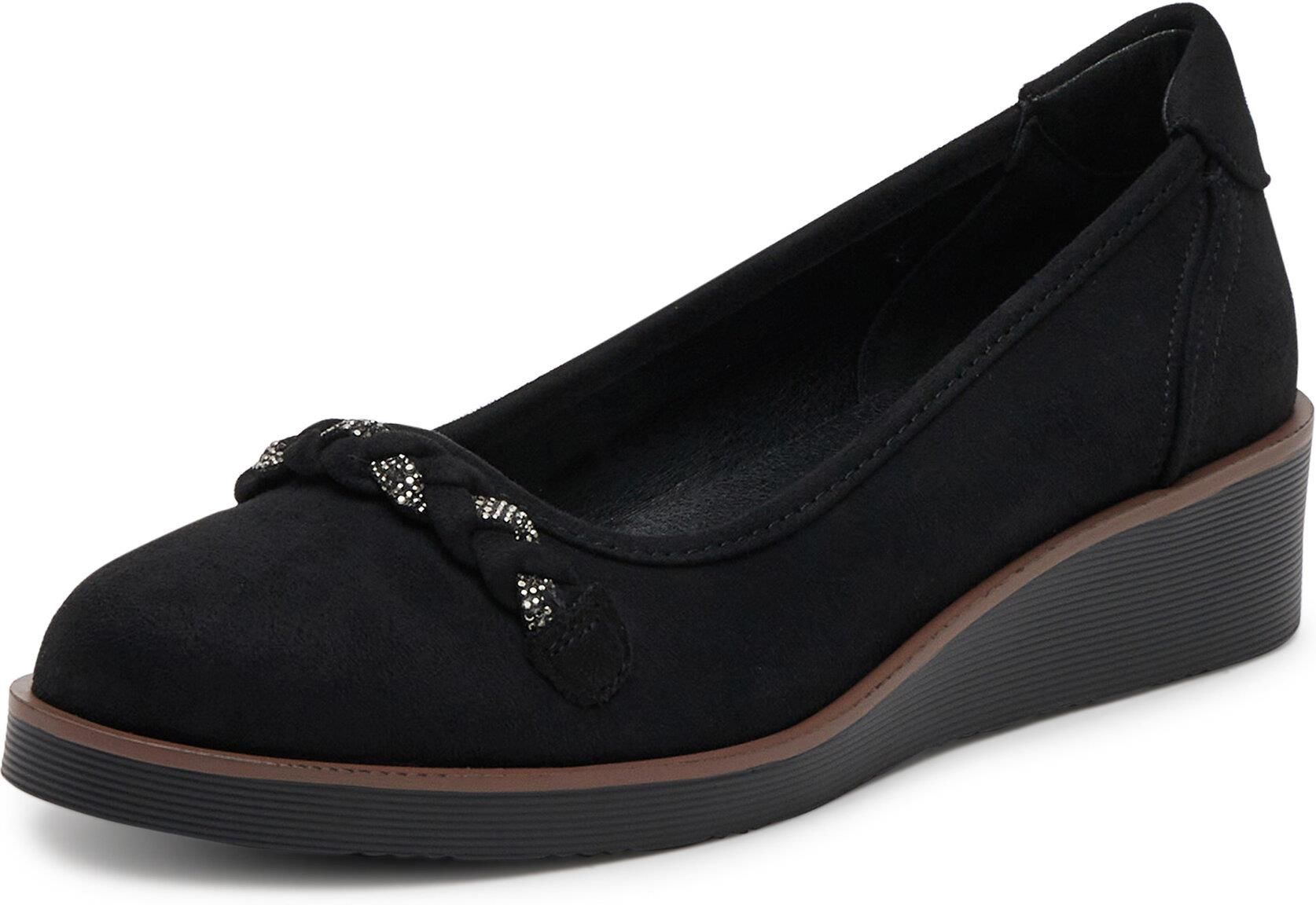 Baleriny marki Clara Barson w klasycznym czarnym kolorze to idealny wybór dla kobiet, które cenią sobie elegancję i wygodę. Wykonane z wysokiej jakości włókienniczego materiału oraz wyposażone w koturn, gwarantują komfort noszenia przez cały dzień. Efektowne cyrkonie dodają im wyjątkowego blasku, dzięki czemu będą doskonałym uzupełnieniem zarówno casualowych, jak i bardziej wyszukanych stylizacji. Te baleriny to połączenie praktyczności z modnym designem, które z pewnością podkreśli Twój unikalny styl. Idealne na każdą okazję! Clara Barson to polska marka, która w każdym sezonie proponuje wygodne i stylowe obuwie damskie, w klasycznych fasonach, które są wzbogacone o nowości ze świata trendów. Marka Clara Barson prezentuje w swojej ofercie przede wszystkim buty, które doskonale dopasowują się do codziennych stylizacji, ale mogą być też perełkami w zestawach na okazje czy wyjątkowe uroczystości. Cechami wyróżniającymi są subtelne fasony i stabilna konstrukcja, które gwarantują przyjemność oraz komfort noszenia. Stonowane kolory, gustowne wykończenie i delikatne dodatki sprawiają, że buty marki Clara Barson chętnie trafiają do damskiej garderoby.