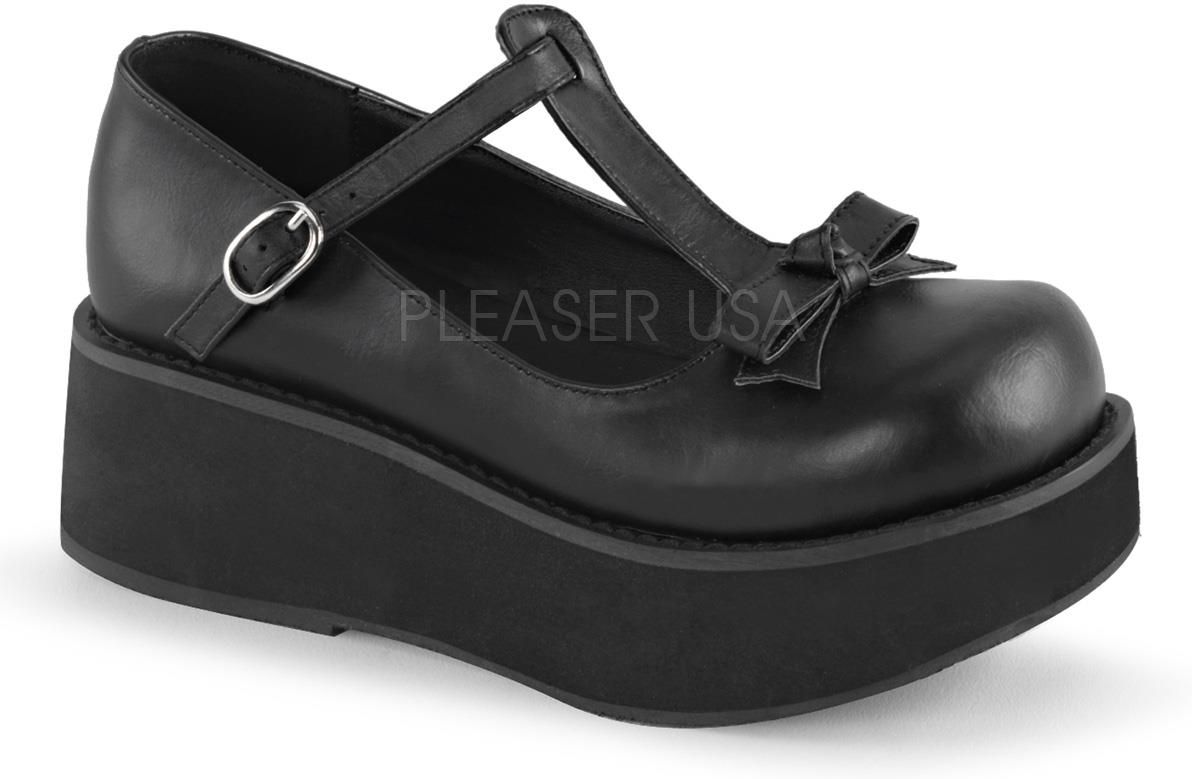 Pociągający wygląd modelu Sprite-03 potrafi naprawdę zachwycić! To buty goth z kokardą utrzymane w klasycznym, lolicim klimacie – ale z wampirzym zacięciem. Bez względu na to, czy najlepiej czujesz się w mrokach alternatywy, czy słodkim Kawaii – ten model dobrze jest mieć w swojej szafie,. Buty Demonia z paskami Sprite-03 to model, który świetnie reprezentuje nietuzinkową twórczość marki. Z jednej strony urocze, z drugiej – seksowne – są to buty dla pań, które lubią nieoczywiste połączenia w swoich stylizacjach, zarówno tych na co dzień, jak i imprezowych. Warto zauważyć, że równocześnie są to platformy gotyckie od Demonia wykonane ze skóry wegańskiej wysokiej jakości, która odznacza się ponad przeciętną odpornością na uszkodzenia zewnętrzne. Czyni to model Sprite-03 świetnym wyborem na różnego rodzaju koncerty, konwenty, czy festiwale. Buty wegańskie z kokardką Demonia Sprite-03 są dostępne w naszym sklepie w rozmiarach od 36 do 42. Ich platforma mierzy sobie 5.7 centymetrów, co zapewnia stabilną i ultra wygodną w użytkowaniu podstawę. Pasek w kształcie litery T i wdzięczna kokardka dopełniają dzieła. Będziesz je nosić częściej niż myślisz!