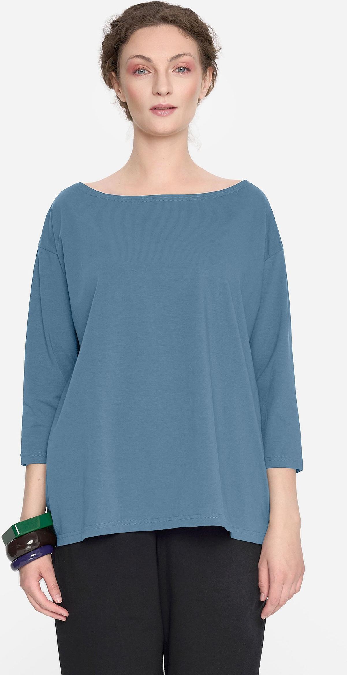 KOLOR: MORSKI Wiskoza 96%, elastan 4%. Dzianina wiskozowa z elastanem. GRAMATURA: 210 G/M2 Prosty T-shirt z dekoltem w łódkę. Jego minimalistyczny fason pasuje do dresowych spodni, jeansów i prostych spódnic. Zaprojektowana i uszyta w Polsce. • dość wąski rękaw o długości ¾, • dekolt łódka, • …