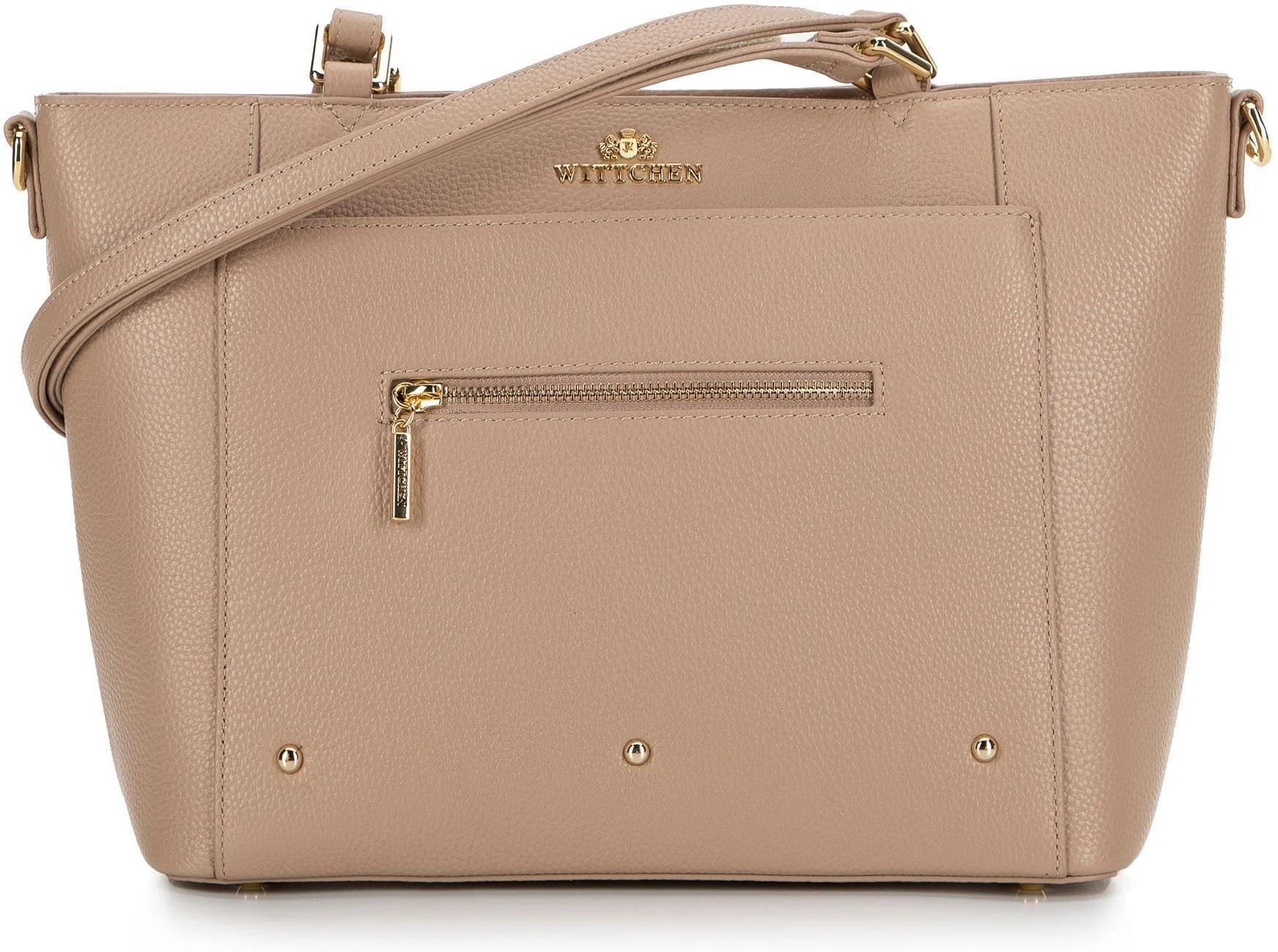 Damska shopperka ze skóry z kieszonkami beżowa Piaseczno