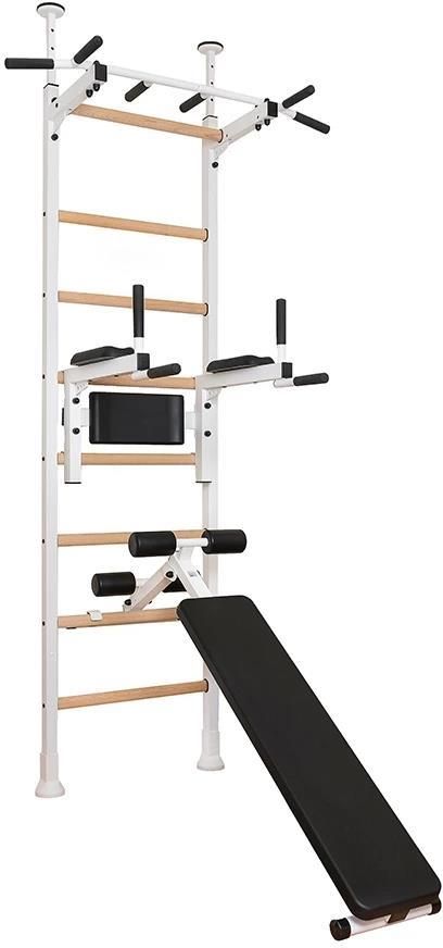 Drabinka gimnastyczna z drążkiem, poręczami i rozbudowaną ławką biały BenchK Piaseczno
