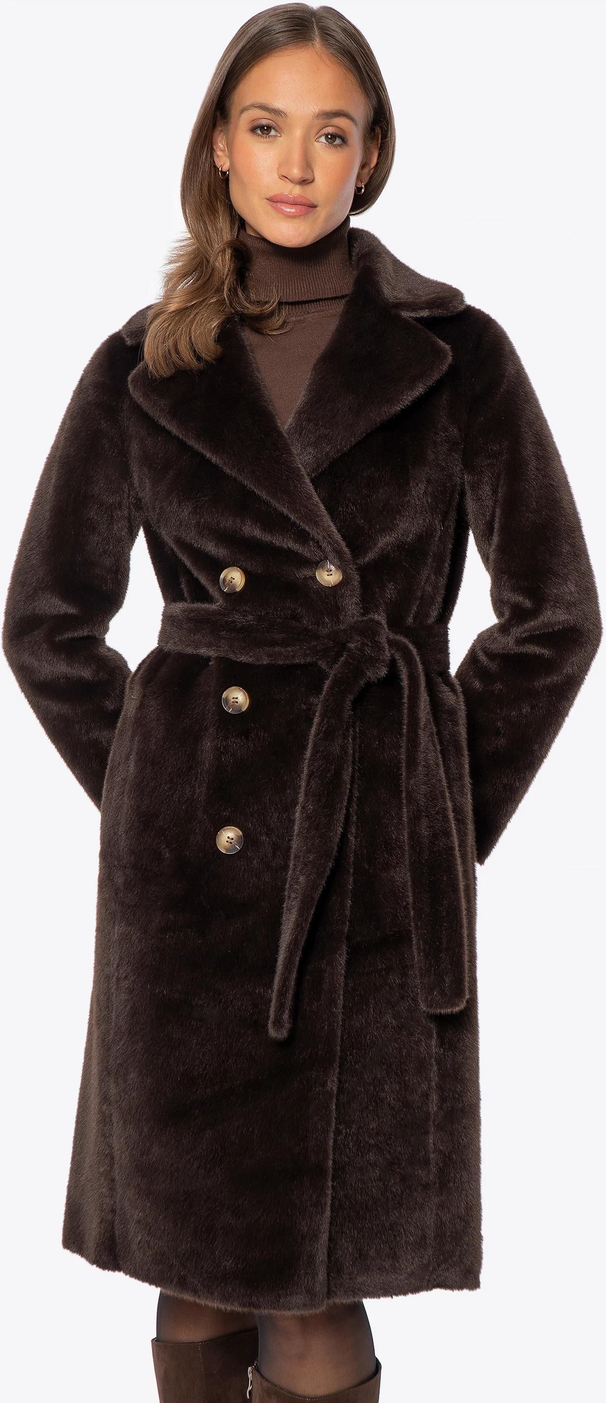Opinie Dwustronny damski płaszcz z wiązaniem ciemny brąz Piaseczno