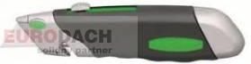 O produkcie ciężki odlew cynkowy, bardzo poręczna rękojeść z wytłoczeniami oraz elementem odcinającym pasy i sznury, wyposażony w 1 ostrze trapezowe oraz 3 zapasowe mieszczące się w magazynku, błyskawiczna wymiana ostrzy przez naciśnięcie przycisku na obudowie Waga: 200 gram Długość: 170 mm.