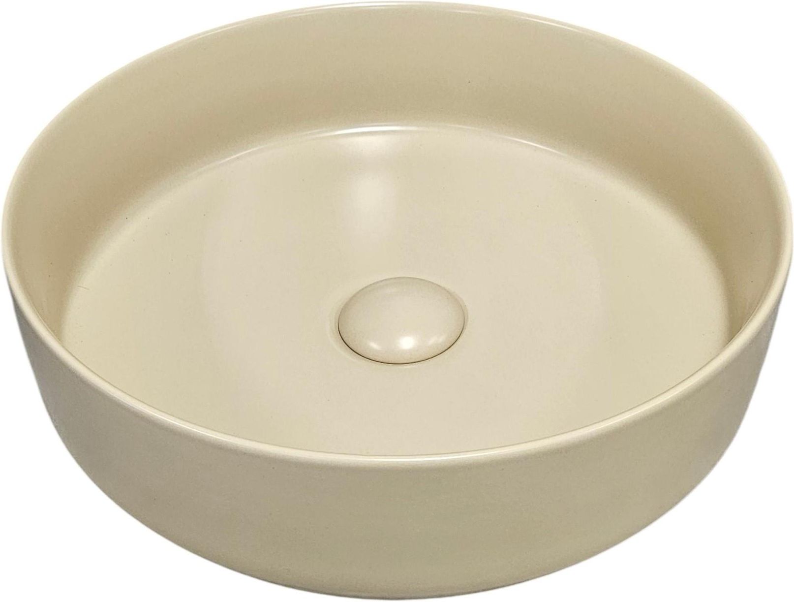 Galatea Design Bulat – Umywalka Nablatowa ∅39 cm z Korkiem Klik-Klak | Lino Matt | GD112DTLN Nowoczesna, okrągła umywalka Galatea Design Bulat to idealne połączenie elegancji i funkcjonalności. Wykonana z wysokiej jakości ceramiki w modnym, matowym kolorze Lino Matt, świetnie sprawdzi się w łazienkach w stylu minimalistycznym, japandi, skandynawskim czy boho. Cechy produktu: Wymiary: średnica ∅39 cm, wysokość 12 cm Kolor: Lino matt (matowy ciepły beż) Materiał: ceramika sanitarna Bez przelewu Bez otworu na baterię – idealna do baterii stojących Waga: 8,3 kg W zestawie: korek klik-klak w kolorze umywalki Dostępność w innych kolorach: Na życzenie istnieje możliwość zamówienia umywalki w innych wariantach kolorystycznych – zapytaj obsługę sklepu. Cena dotyczy umywalki wraz z korkiem klik-klak.