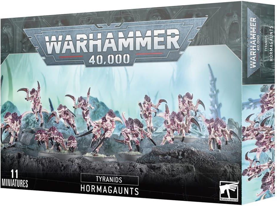 Ten rozbudowany plastikowy zestaw umożliwia zbudowanie 10 Hormagauntów oraz Ripper Swarm. Te agresywne organizmy prezentują się w różnych pozach – część skacze, inne podkradają się, a jeszcze inne rzucą się w kierunku ofiary, co odpowiada ich prędkości i funkcji jako wojownicy w potyczkach w zwarciu. Te rozmaite pozy można zestawić z wieloma wzorami głów, dzięki czemu Twoje stado Hormagauntów zachowa różnorodność, niezależnie od jego rozmiarów. Z tego oddziału złożysz 10 modeli Hormagauntów, agresywnej, hordy Tyranidów wspieranej przez jeden model Reaper Swarm. Modele przeznaczone do wykorzystania w grze Warhammer 40.000. Komplet zawiera 68 komponentów z tworzywa sztucznego i jest zaopatrzony w 10 okrągłych podstawek Citadel o średnicy 28,5 mm oraz jedną okrągłą podstawkę Citadel o średnicy 40 mm. Miniatury są dostarczane w formie niepomalowanej i wymagają złożenia.
