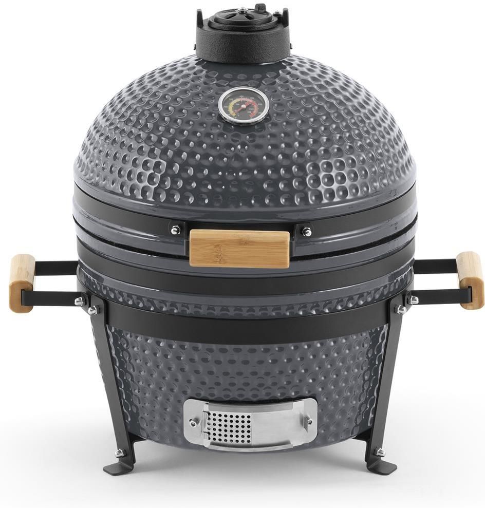 Grill ceramiczny KAMADO Small marki Landmann to grill węglowy z grubymi, wysokimi ceramicznymi ścianami, zapewniającymi wysokie temperatury wewnątrz. Materiał ceramiczny zapewnia długie utrzymywanie ciepła oraz stałą temperaturę. Wysokiej jakości uszczelnienie zapewnia niskie straty ciepła. Ruszt grillowy ze stali nierdzewnej o średnicy ok. 33,5 cm; Żeliwny zawór pokrywy oraz termometr w pokrywie do kontroli i monitorowania temperatury w komorze grilla; Idealny do grillowanych potraw o długim czasie gotowania; Idealny do przygotowania posiłku dla 4-6 osób.