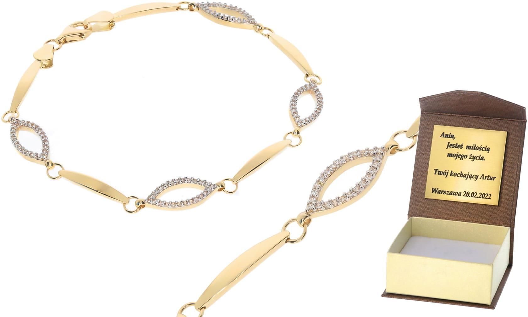 Złota bransoletka Próby 585 gr. 4.94 Długość bransoletki 19 cm. Szerokość bransoletki 7 mm. Złota bransoletka przedstawiona w naszej ofercie została wykonana z wysokiej jakości złota próby 585. Biżuteria została stworzona z pasją i wielką precyzją, aby zapewnić komfort jej użytkowania. Prezentowana bransoletka dzięki swemu pięknu doda Ci blasku. Jest to biżuteria, która będzie Ci służyć przez długi czas, zarówno od święta jak i na co dzień. W naszej ofercie posiadamy niezwykle szeroki wybór innych modeli bransoletek różniących się wagą, sposobem wykonania a także finezyjnymi wzorami. Dostępne są bransoletki pełne, solidnie zrobione. SPLOT: NIE DOTYCZY PRÓBA: 585 MATERIAŁ: ZŁOTO SZEROKOŚĆ: 7,00 MM DŁUGOŚĆ: 19,00 CM https://sklep652320.shoparena.pl/userdata/public/gfx/6353.jpg Cena: 2088.00 Waga: 4.94 BTD 035 IV 4AU 95374305 W zestawie otrzymujesz: - Nową biżuterię badaną przez Polski Urząd Probierczy - Produkt cechowany zgodnie z polskim Prawem probierczym Dz. U. z 1993 r., Nr 55, poz 249 - Oryginalne firmowe pudełeczko (gratis) - Metkę jubilerską - Na życzenie grawerowaną tabliczkę z dedykacją PRZY ZAKUPIE POWYŻEJ 500 ZŁOTYCH OTRZYMASZ ELEGANCKĄ TOREBKĘ PREZENTOWĄ GRATIS Na życzenie grawerowana dedykacja na tabliczce umieszczonej wewnątrz pudełeczka. W przypadku zakupu powyżej 100 złotych dedykacja gratis. Tabliczka laminowana w kolorze złotym z grawerem dowolnego tekstu w kolorze czarnym. Treść graweru oraz rodzaj pudełeczka należy podać w "wiadomości do sprzedającego" Jeśli nie otrzymamy takiej informacji produkt zostanie zapakowany w standardowe pudełeczko bez dedykacji.