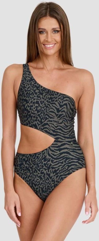 Oliwkowy damski strój kąpielowy Karl Dna One, marki Karl Lagerfeld.Wymiary modelki: wzrost 176 cm, biust 85 cm, talia 65 cm, biodra 92 cm. Modelka ma na sobie produkt w rozmiarze S.