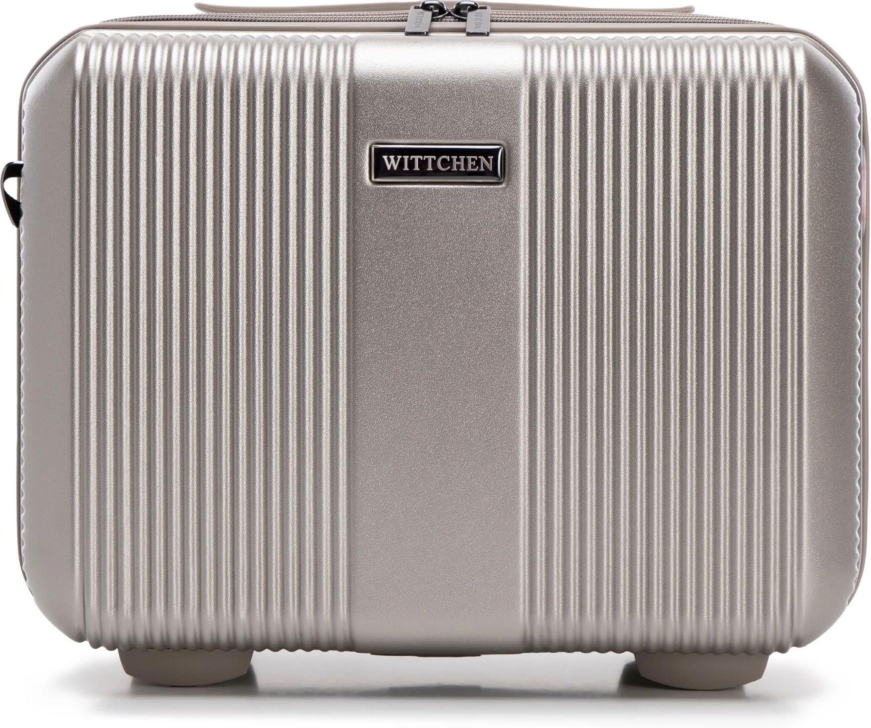 ELEGANCKA KOSMETYCZKA WITTCHEN Odkryj wyjątkową kosmetyczkę podróżną, która łączy elegancję z funkcjonalnością. To akcesorium z polikarbonu wyróżnia się nowoczesnym designem i starannie przemyślanymi detalami, które sprawią, że każda podróż stanie się przyjemnością. Dla kogo? Idealne rozwiązanie dla osób ceniących sobie organizację i styl, niezależnie od tego, czy jesteś częstym podróżnikiem, czy planujesz weekendowy wyjazd. Kluczowe cechy Trwałość: Wykonana z wysokiej jakości polikarbonu, kosmetyczka jest odporna na uszkodzenia i zarysowania. Stylowy design: Kosmetyczka o pionowych pasach z gładkim paskiem, emanuje klasą i nowoczesnością. Funkcjonalne wnętrze: W jednej komorze kosmetyczki znajdują się regulowane pasy zabezpieczające rzeczy, z drugiej komora na suwak z dwiema otwartymi kieszeniami. Wykończenie: Wnętrze wyściełane jest elegancką, ciemną podszewką z poliestru w logo producenta, która podkreśla luksusowy charakter kosmetyczki. Wygodne i funkcjonalne rozwiązania Cztery nóżki na spodzie kosmetyczki gwarantują jej stabilność i wygodne ustawienie na każdej powierzchni. Dzięki nim kosmetyczka pozostaje zawsze w idealnej pozycji, co ułatwia organizację i dodaje elegancji Twoim podróżom. Dodatkowa kieszeń: Pomiędzy komorami znajduje się mała kieszeń na zamek, idealna na drobne przedmioty. Wygodne przenoszenie: Wyposażona w gumową rączkę z logo oraz praktyczny uchwyt na małą walizkę z tyłu, które zapewniają komfort i wygodę podczas transportu. Odpinany i regulowany pas umożliwia dopasowanie kosmetyczki do Twoich potrzeb, oferując wygodę i bezpieczeństwo. Dzięki niemu możesz nosić kosmetyczkę na ramieniu, co dodatkowo zwiększa komfort użytkowania. Parametry produktu wysokość (cm): 29,5 szerokość (cm): 36 głębokość (cm): 16 pojemność (l): 14 materiał: polikarbon waga (kg): 1 podszewka: poliester długość paska (cm): 86 - 144 dodatki: odpinany pasek