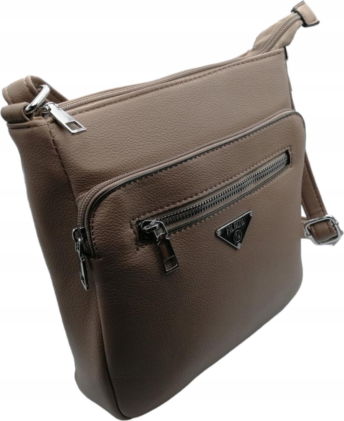 LISTONOSZKA NA RAMIĘ, BRĄZOWA MODNA TOREBKA DAMSKA Z 6 KIESZENIAMI Piaseczno