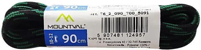 Zielono-czarne, trekkingowe sznurówki do butów, 90 cm, Mountval idealne do nawlekania 10-12 oczek w cholewce obuwiowej.
