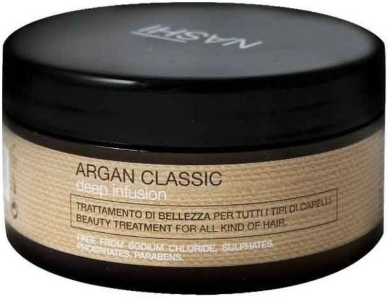 Nashi Argan mocno/głęboko nawilżająca maska do włosów włoskiej firmy NASHI ARAGAN poj 250 ml Profesjonalna maska, którą pokochasz za łatwość użycia i natychmiastowe rezultaty. Nashi Argan Deep Infusion to profesjonalna maska, w której się zakochasz dzięki łatwości użycia i natychmiastowym efektom. Opracowana do stosowania raz w tygodniu zamiast odżywki jako intensywna kuracja w chwilach szczególnego stresu i nagłej potrzeby. Deep Infusion wnika głęboko we włosy, odżywiając i przywracając im idealną strukturę, nie obciążając ich. Wybierz ją i odkryj jej konsystencję, elastyczność i łatwość stylizacji już od pierwszego użycia! Jeśli masz czas na odrobinę luksusu dla swoich włosów, zmieszaj kilka kropli olejku z niewielką ilością Deep Infusion i pozostaw na około 20-30 minut, następnie spłucz dużą ilością wody... włosy będą Ci wdzięczne! Deep Infusion wnika we włosy, głęboko je odżywiając i przywracając im idealną strukturę bez obciążania. Wybierz ją, aby już od pierwszego użycia zauważyć objętość, elastyczność i łatwość stylizacji! W składzie organiczny olejek Araganowy i olej lniany.