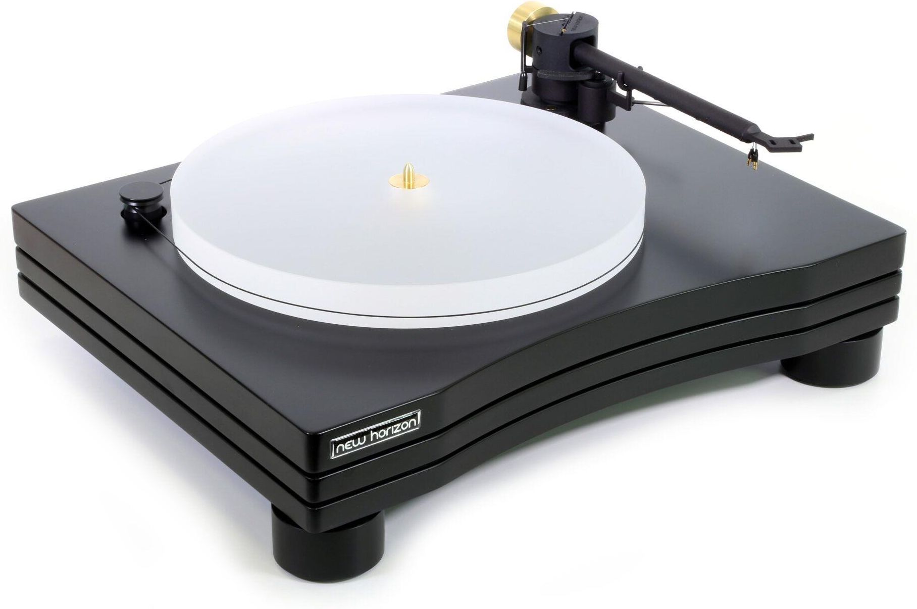 New Horizon Audio 301i Nowa definicja doskonałości – model New Horizon Audio 301i to wyjątkowy gramofon, który stanowi owoc wieloletnich badań i nieustannego doskonalenia. Jego imponująca konstrukcja, dopracowane detale oraz zaawansowane rozwiązania techniczne łączą się w harmonijną całość, oferując użytkownikom nie tylko perfekcyjne brzmienie, ale również estetyczne doznania. Gruba plinta, wykonana z HDF, izolujące nóżki oraz przeprojektowany system łożyskowania i ramienia to kluczowe elementy tego modelu. Dźwięk, który generuje New Horizon Audio 301i, jest zarówno dynamiczny, jak i pełen detali, pozwalając odkryć magię każdej płyty winylowej. Kluczowe cechy gramofonu New Horizon Audio 301i 1. Plinta HWT (Heavy Weight and Thickness) Plinta o grubości 40 mm wykonana z HDF została zaprojektowana z nowym rozkładem masy, co poprawia stabilność i tłumienie wibracji. Konstrukcja oddziela sekcję zasilania od sekcji sygnału audio, redukując zakłócenia i szumy. Materiał ten, dzięki swojej wysokiej gęstości, przewyższa właściwościami tradycyjne drewno. 2. Synchroniczny silnik prądu przemiennego Silnik synchroniczny 24 VAC zapewnia stabilną prędkość obrotową talerza, niezależnie od wahań napięcia sieciowego. Prędkość rotacji wynosi 500 obr./min, co gwarantuje płynne i precyzyjne odtwarzanie dźwięku. 3. Mechaniczne zawieszenie System zawieszenia z precyzyjnie skalibrowanymi sprężynami stalowymi izoluje silnik od reszty konstrukcji gramofonu, eliminując przenoszenie wibracji i poprawiając jakość dźwięku. 4. Napęd paskowy Silikonowy pasek napędowy zapewnia efektywny transfer energii z silnika na talerz, eliminując sprzężenie zwrotne. Jego cienka konstrukcja redukuje wibracje i zapewnia trwałość. 5. Łożysko BIB (Brass Inverted Bearing) System odwróconego łożyska, wykonany z mosiądzu i ceramiki, minimalizuje tarcie i generuje maksymalną ciszę podczas pracy. Konstrukcja obejmuje ceramiczną kulkę zanurzoną w kąpieli olejowej, która wspiera talerz, zapewniając jego stabilność. 6. Ramię NH99 (9 cali) Ramię NH99 to zaawansowana konstrukcja wykonana z warstwowego materiału łączącego nylon, włókno szklane i mosiądz, co minimalizuje rezonanse. Sekcja przeciwwagi pokryta teflonem dodatkowo tłumi wibracje. Ramię jest w pełni regulowane, oferując ustawienia VTA, azymutu i wyrównania wkładki. Ceramiczne łożyska radialne zapewniają precyzyjne odczytywanie sygnałów z płyty. 7. Talerz FLP (Full Lathed Plate) Talerz o grubości 30 mm i wadze 2,3 kg, wykonany z krystalicznego metakrylanu, jest precyzyjnie wykończony na tokarce. Dzięki wysokiej masie i właściwościom tłumiącym wibracje poprawia dynamikę i szczegółowość odtwarzanej muzyki. 8. Wyjście na terminalach RCA Pozłacane terminale RCA oraz osobny zacisk uziemienia gwarantują najwyższą jakość sygnału audio. Oddzielne terminale dla zasilania i sygnału audio redukują zakłócenia. 9. Nóżki 6040RD Nóżki New Horizon 6040RD, wykonane z Delrin®, stali i gumy o niskiej gęstości, skutecznie eliminują wibracje. Dzięki regulacji wysokości można idealnie wypoziomować gramofon, co znacząco wpływa na jakość dźwięku. Specyfikacja techniczna System gramofonu: Sztywna pojedyncza podstawa Odsprzęganie: Silnik na sprężynach Ramię: 9-calowe, proste NH99 Ustawienia ramienia: VTA, wyrównanie, azymut, siła nacisku Anty-skating: System progresywny Wkładka: Brak w zestawie Napęd: Zewnętrzny pasek silikonowy Silnik: Synchroniczny AC Prędkość: 33 1/3, 45 obr./min Wybór prędkości: Mechaniczny Talerz: 30 mm / 2,3 kg z metakrylanu, toczony Łożysko: Odwrócone, ceramiczna kulka Wymiary (SxGxW): 450 x 365 x 155 mm Waga (z opakowaniem): 10 kg (11,7 kg) Wykończenie: Matowa czerń, biel lub drewno Zestaw zawiera Kable RCA Zasilacz 24 VAC / 500 mA Pokrywa przeciwkurzowa z metakrylanu Instrukcja obsługi Szablon referencyjny dla wkładki Obciążnik anty-skating Waga kalibracyjna ramienia NH Sling Bar 2 klucze sześciokątne Narzędzie do regulacji VTA i azymutu