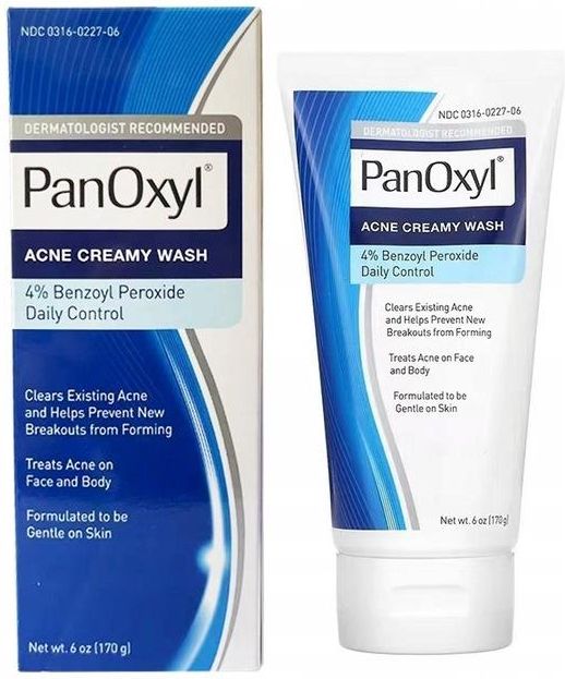 PanOxyl Acne Creamy Wash 4% 170 g pianka do mycia twarzy ✅Maximum Power - Acne Cleansing Foam 170g Codzienne stosowanie ⭐4% jest wystarczająco łagodny do codziennego stosowania i wystarczająco silny, aby zwalczać trądzik. Zalecana przez dermatologów do codziennego stosowania jako silnie oczyszczająca pianka PanOxyl Acne Foaming Wash zawiera 4% nadtlenek benzoilu, aktywny składnik, który zabija bakterie wywołujące trądzik i złuszcza istniejący trądzik, zapobiegając powstawaniu nowego trądziku. Ponadto kremowa formuła jest zrównoważona emolientami dla łagodniejszego, nawilżającego oczyszczania. Formuła jest wystarczająco silna, aby zwalczać najcięższy trądzik. Antybakteryjna pianka oczyszczająca oczyszcza pory i zapewnia świeższy, czystszy wygląd - oczyszczając i odblokowując pory twarzy. Zalety: ✅Szybko zabija bakterie wywołujące trądzik ✅Idealna do codziennego stosowania ✅Oczyszcza i odblokowuje pory na twarzy, klatce piersiowej i plecach ✅Zawiera składniki nawilżające zwalczające suchość skóry ✅Pomaga skórze skuteczniej się złuszczać i zapobiega zatykaniu porów Produkt zawiera: 1 butelkę 4% płynu do mycia twarzy 170g ⭐Sposób użycia: Nałożyć niewielką ilość na uprzednio zwilżoną skórę. Następnie delikatnie wmasować w skórę przez 1-2 minuty i spłukać. Zacznij od stosowania raz dziennie i w razie potrzeby stopniowo zwiększaj częstotliwość aplikacji do dwóch lub trzech razy dziennie. Jeśli wystąpi suchość lub łuszczenie się skóry, należy ograniczyć stosowanie do jednego dnia lub co drugi dzień. Jeśli skóra jest narażona na działanie promieni słonecznych, po użyciu tego produktu należy zastosować filtr przeciwsłoneczny. PanOxyl płyn do mycia twarzy to niskopieniący środek do mycia twarzy Zaleca się stosowanie wraz z gamą produktów PanOxyl w celu uzyskania lepszych rezultatów. nowa data